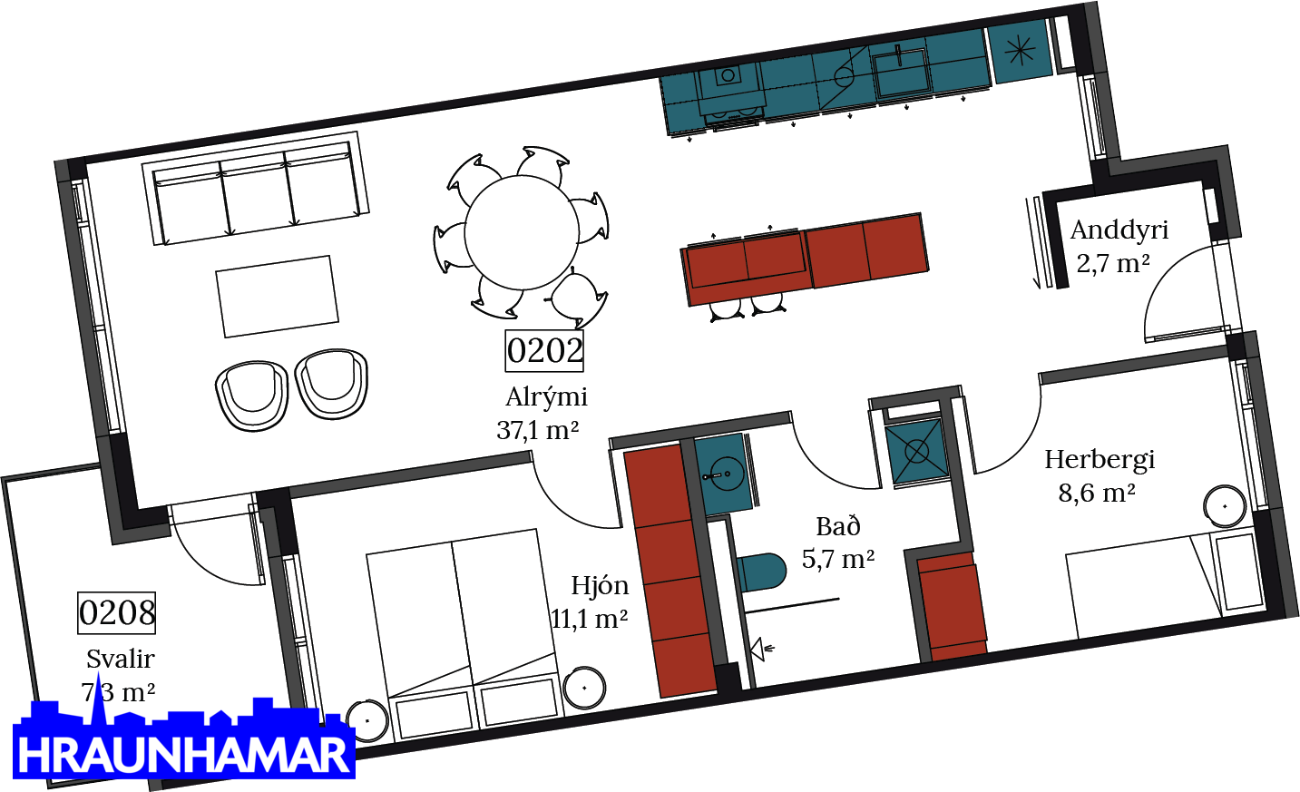 Íbúð 202 er þriggja herbergja, skráð 82,7 fermetrar með geymslu. Auk þess fylgir stæði með í lokaðri bílageymslu. Sjá nánar um íbúðina hér. Sjá söluvef hér.