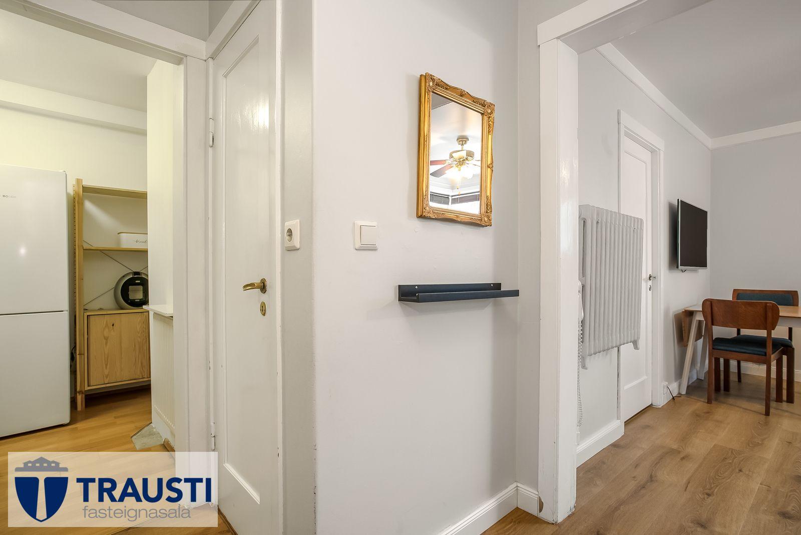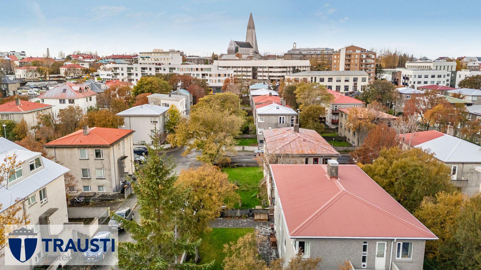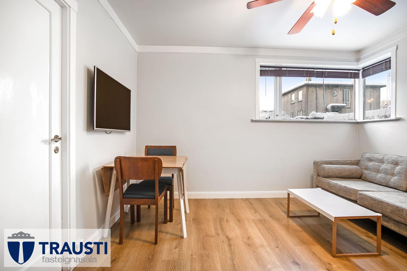 Rúmgóð og björt 2ja herbergja íbúð í kjallara í nýsteinuðu húsi við Skeggjagötu í Reykjavík. Nýlegt parket er á stofu og gangi. Geymsla er innan íbúðar. Þvottahús í sameign er á hæð íbúðar.