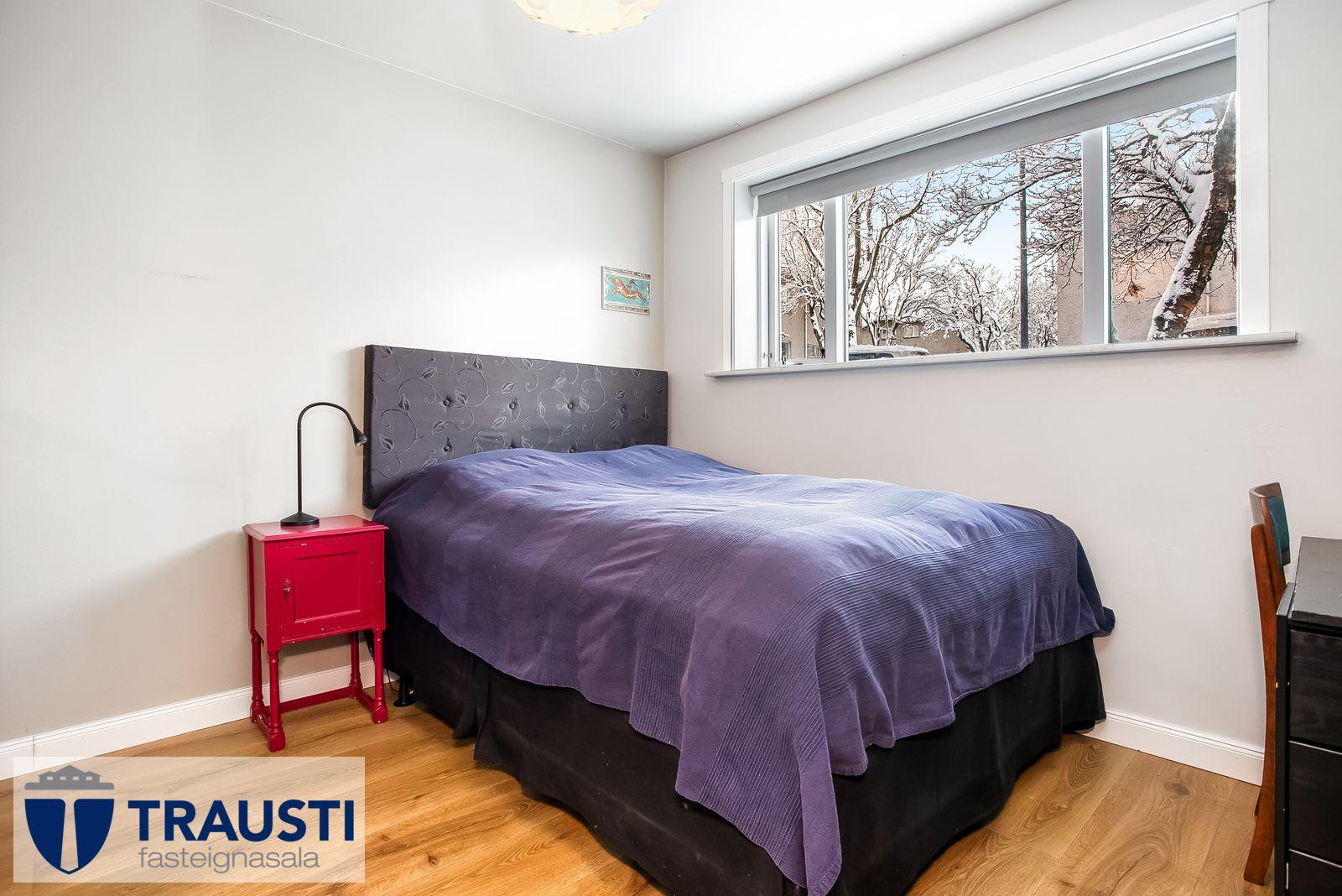 Svefnherbergi er rúmgott með góðu skápaplássi og parket á gólfi.