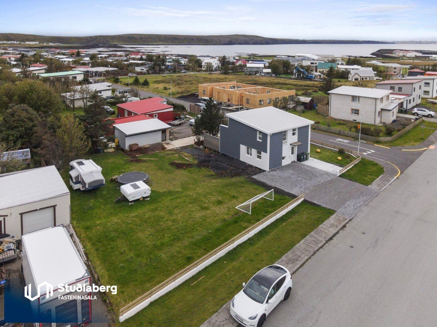 *Stigi er tepplagður með stálhandriði. *Hiti er í öllu gólfum eignarinnar. *Búið er að endurnýja neyslulagnir, raflagnir og rafmagnstöflu. *Ný einangrun og klæðning er á húsnu. *Búið er að endurnýja þakjárn. *Búið er að endurnýja alla glugga og útidyrahurðir. *Tvær innkeyrslur eru við húsið, ein malbikuð við bílskúr og önnur hellulögð við Hafnargötu. *Lóðin er öll grasilögð og afgirt. *Eignin stendur á mjög stórri lóð, 1.256fm. *Góður staður með flottu útsýni. Örstutt frá íþróttahúsi, sundlaug og leiksvæði.