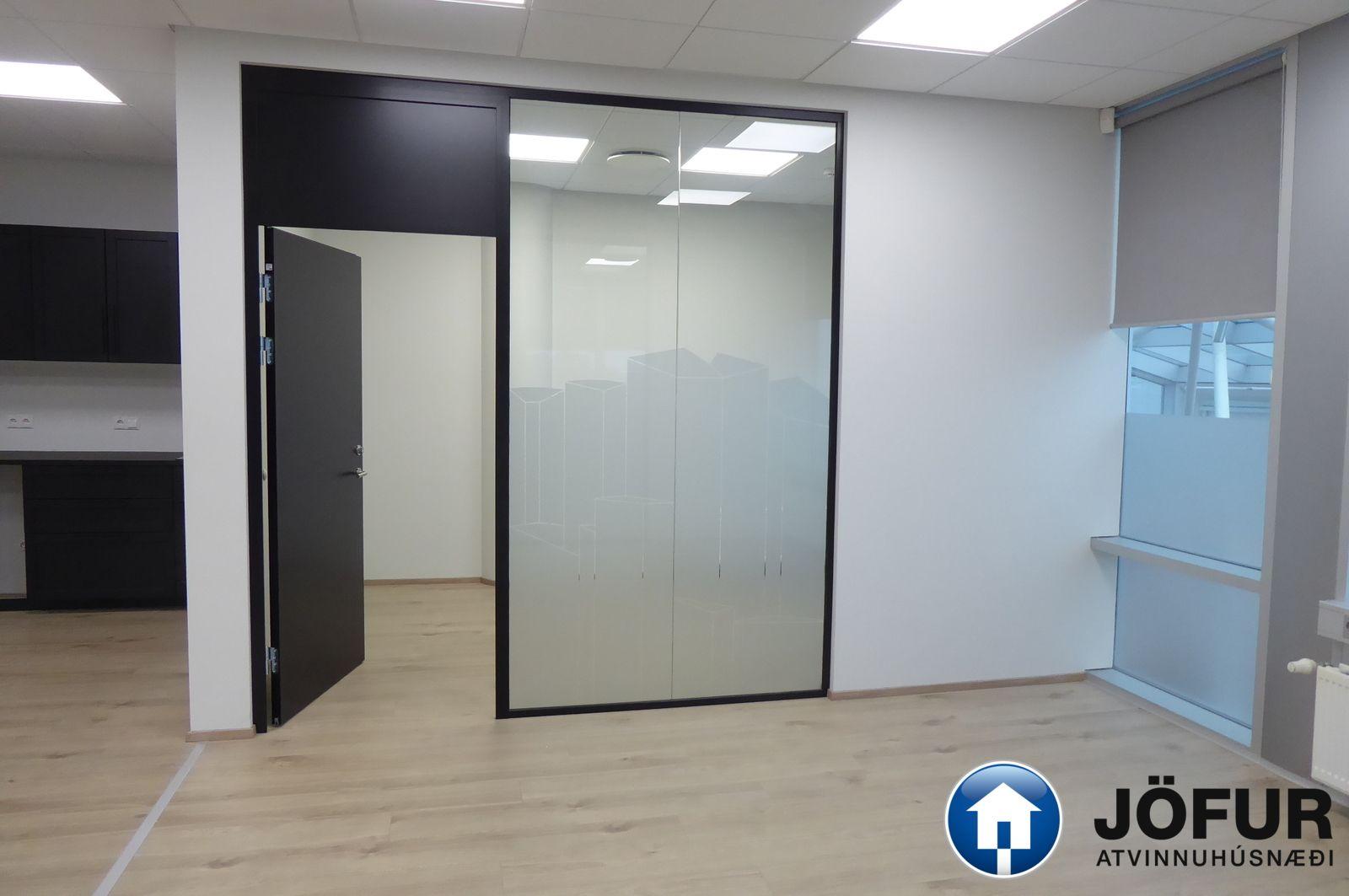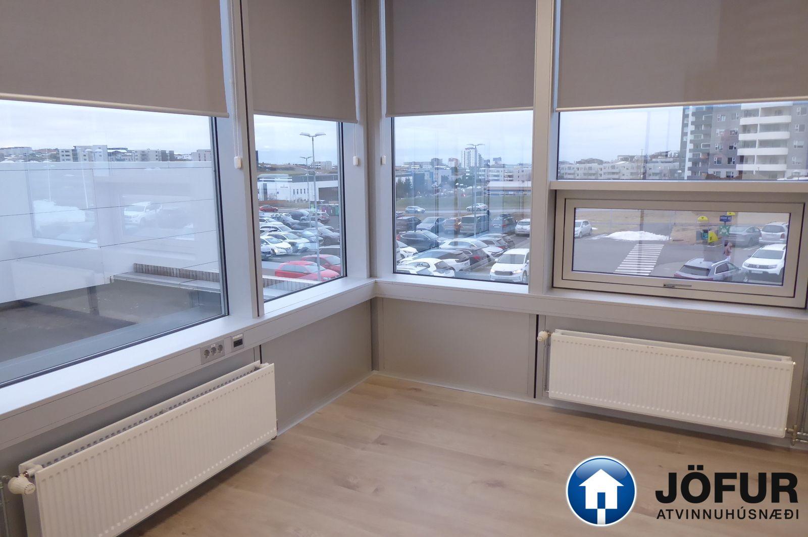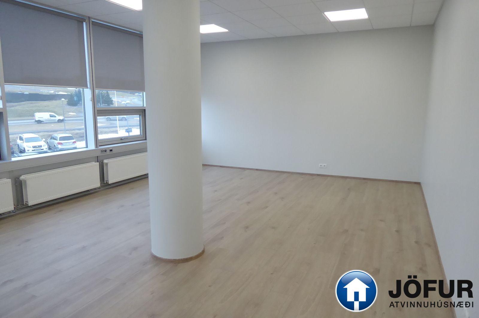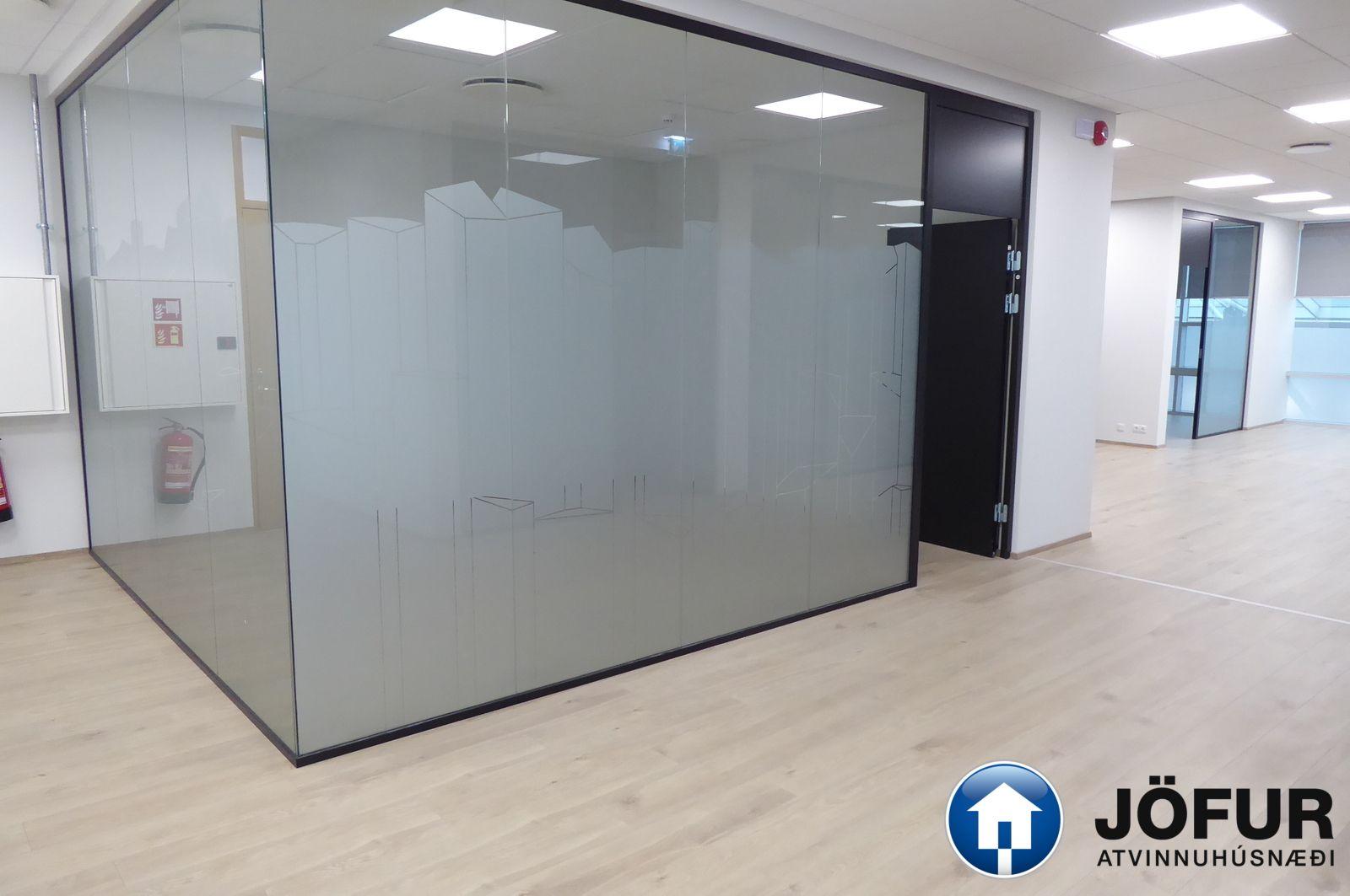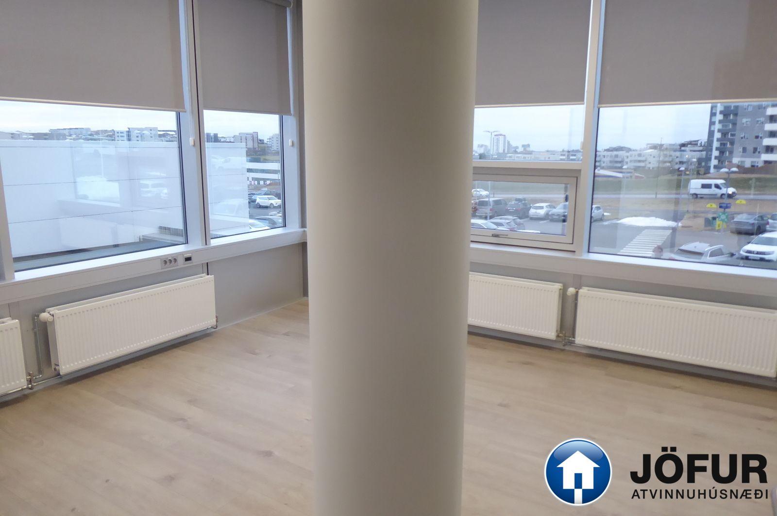 Nánari lýsing: Húsnæðið skiptist upp í opið rými/ móttöku eitt stórt lokað skrifstofurými, 5 minni lokaðar skrifstofur, eitt fundarherbergi, eldhús/ kaffistofu, geymslu og 2 snyrtingar, (önnur með sturtuaðstöðu). Parket er á gólfum. Kerfisloft og lýsing í loftum. Næg bílastæði á lóð hússins. Verslun og þjónusta er á jarðhæðinni. Vel staðsett skrifstofuhúsnæði í Kópavogi. VSK leggst við leigufjárhæðina.