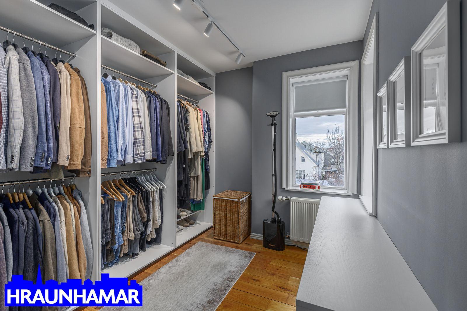 Barnaherbergi III: Þetta herbergi er nýtt sem fataherbergi í dag. Gegnheilt viðargólf.
