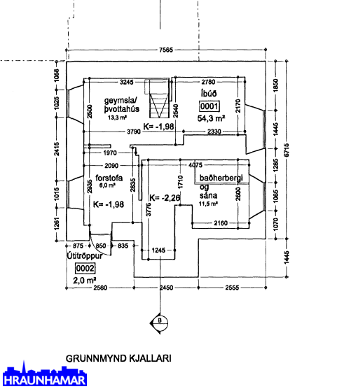 Nánari lýsing á kjallara:Þvottaherbergi: Gengið niður úr borðstofu í þvottahúsið en þarna er minni lofthæð en innar í rýminu. Steypt gólf.