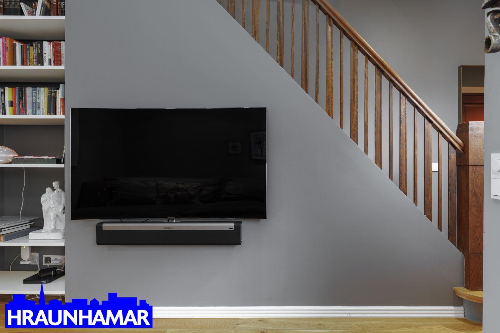 Sjónvarpshol: Gott pláss fyrir góðan fjölskyldusófa, innfelld lýsing, gegnheilt viðargólf.