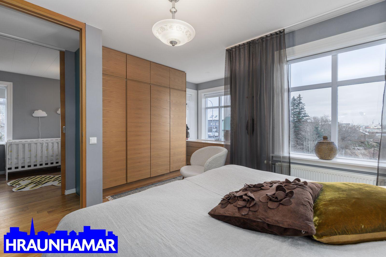 SUÐURGATA 27 HAFNARFIRÐI, EIGNIN ER LAUS VIÐ KAUPSAMNING. Hraunhamar fasteignasala og Helgi Jón Harðarson sölustjóri. s. 893-2233 helgi@hraunhamar.is kynna: Glæsilegt og virðulegt og mikið endurnýjað 5-6 herbergja 227 fm einbýli á tveimur hæðum með kjallara við Suðurgötu 27 í Hafnarfirði. Þetta er ein af fallegri eldri eignum í gamla bænum og setur þetta virðulega hús mikin svip á hverfið. Húsið er byggt 1920 en hefur verið mikið endurnýjað og fengið mjög gott viðhald síðustu tvo áratugi. Það er stutt ganga í miðbæinn, grunnskóla, Flensborg ofl. Húsið stendur á fallegri afgirtri hornlóð. Laust Fyrirhugað fasteignamat 2026 er 154.200.000 Nánari lýsing á efri hæð:Hjónaherbergi: Gott og bjart herbergi með skápum, gegnheilt viðargólf.