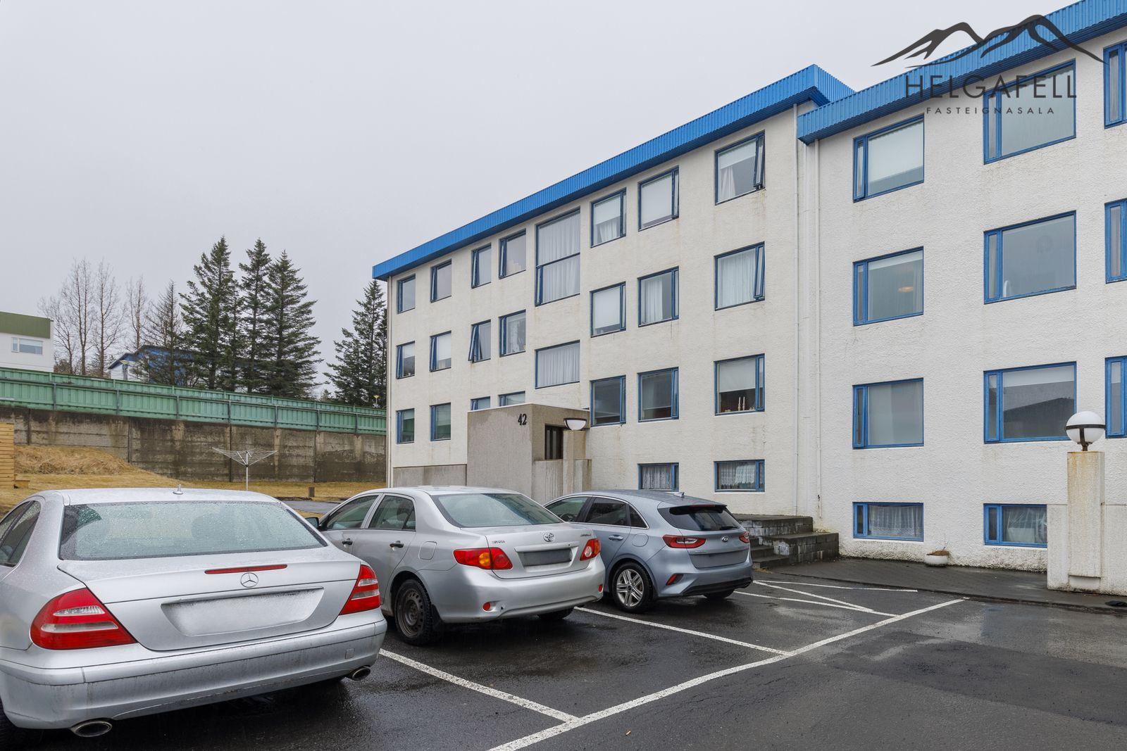 Íbúðin er eitt svefnherbergi, stofa, baðherbergi og forstofa. Íbúðinni fylgir engin geymsla. Auk þess fylgir ekki þessari ósamþykktu íbúð afnotaréttur af sameign, þ.e. þvottahúsi, þurrkherbergi, barnavagna- og reiðhjólageymsla ásamt bílastæði.