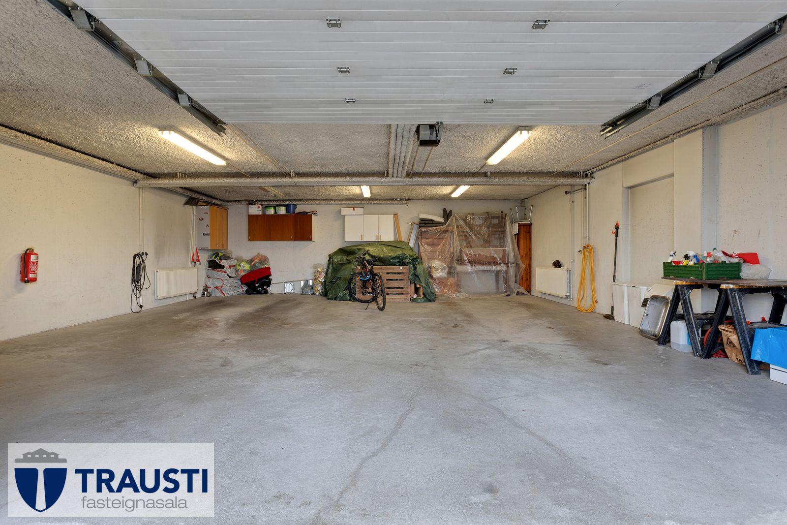 Gott einkastæði fylgir eigninni í lokaðri 3ja bíla bílageymslu á jarðhæð hússins. Hjóla- og vagnageymsla í sameign á jarðhæð.