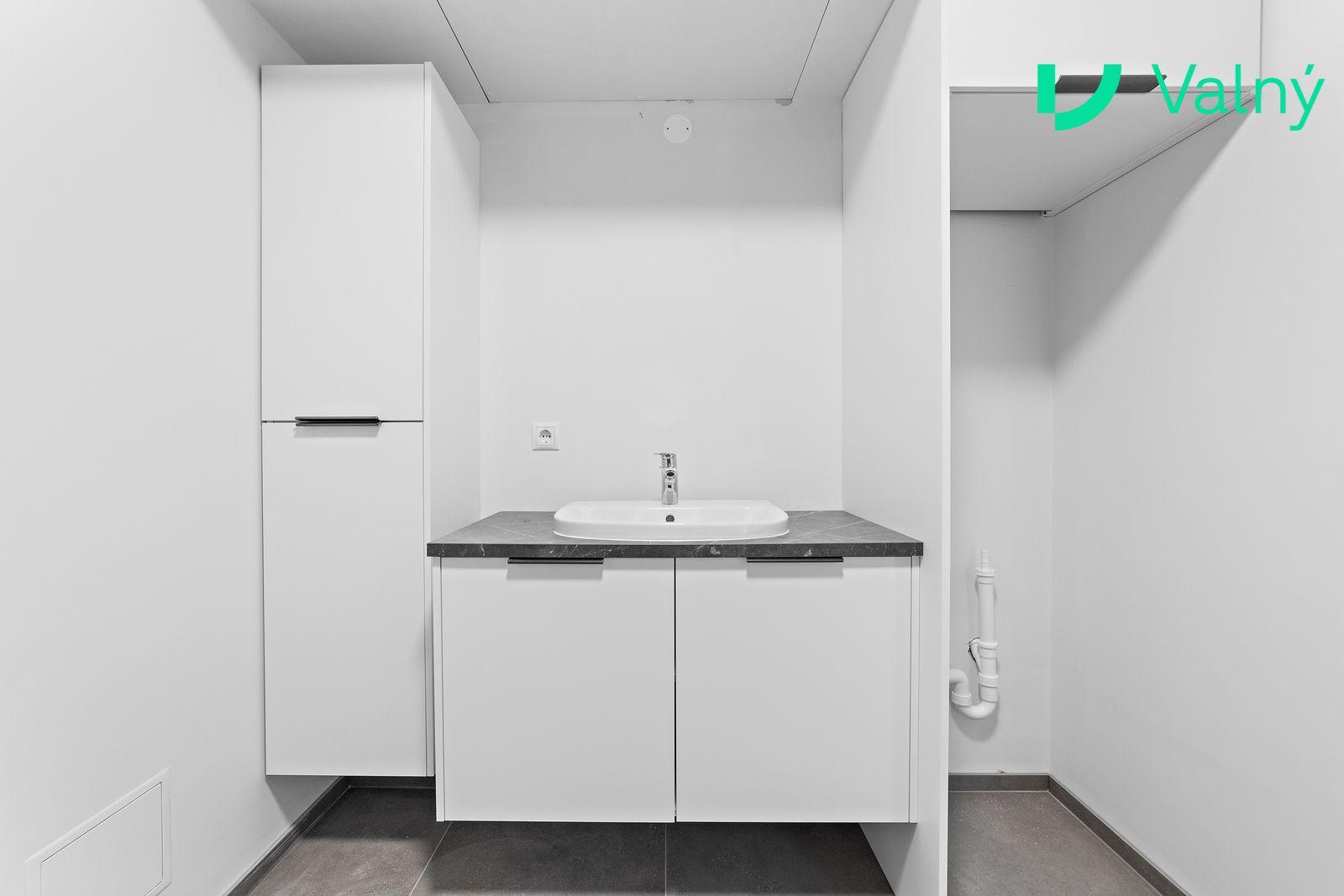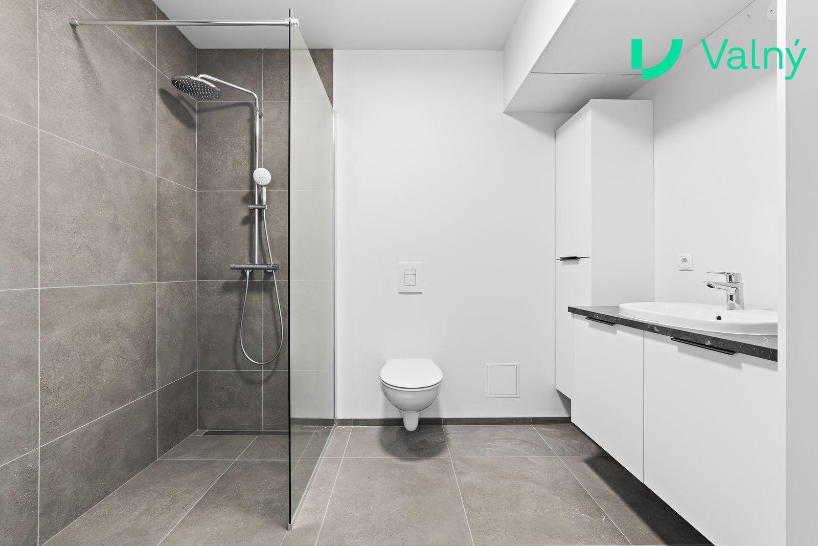 Baðherbergi flísalagt (30×60 cm eða 60×60 cm þar sem við á) á gólfi og veggjum að hluta. Upphengt salerni, handklæðaofn og flísalögð walk-in sturta. Speglar fylgja ekki.
