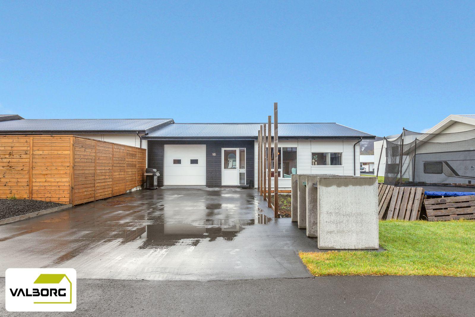 Falleg, nýleg íbúð með stórum bílskúr í þriggja íbúða raðhúsi á góðum stað.