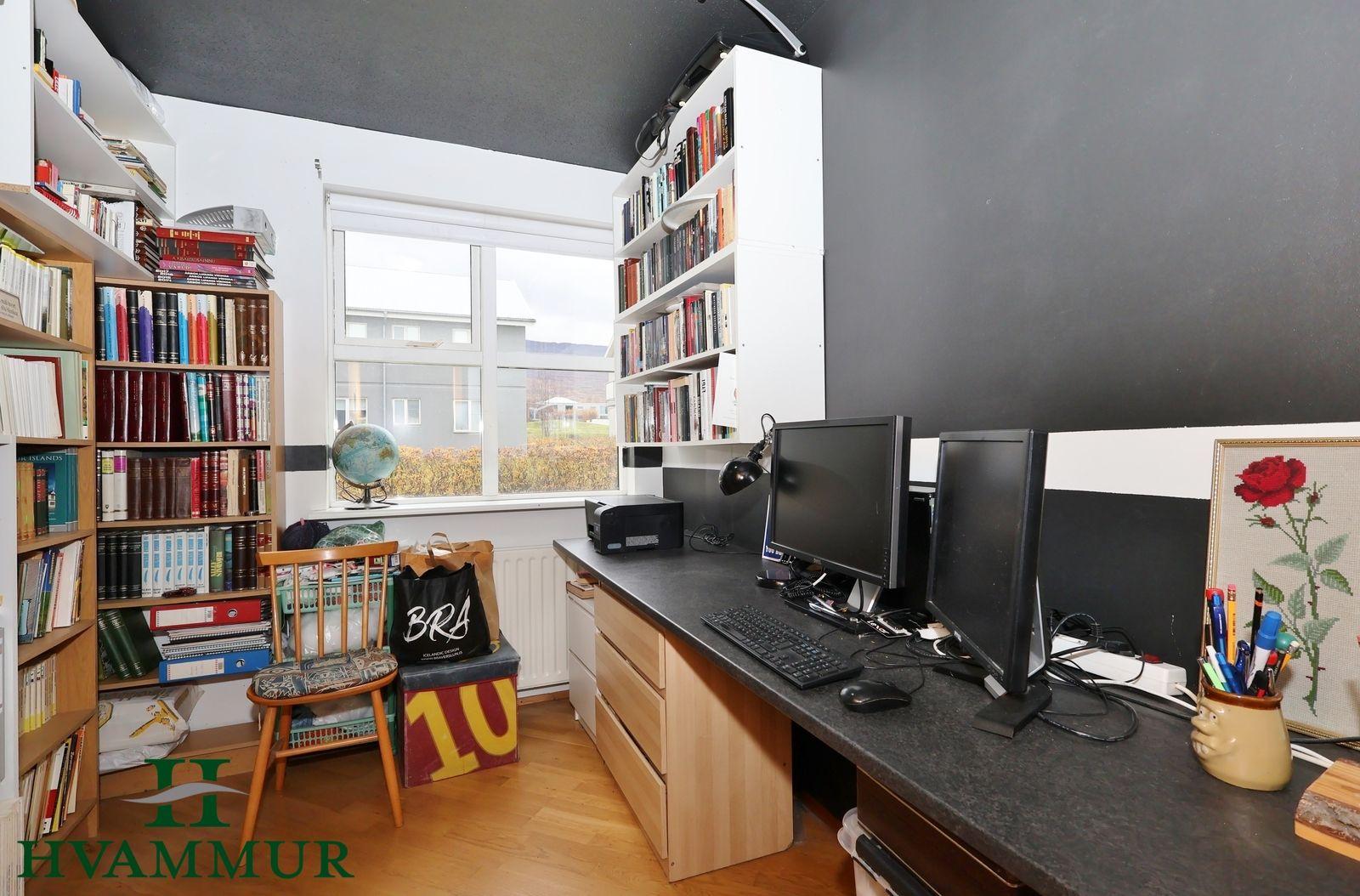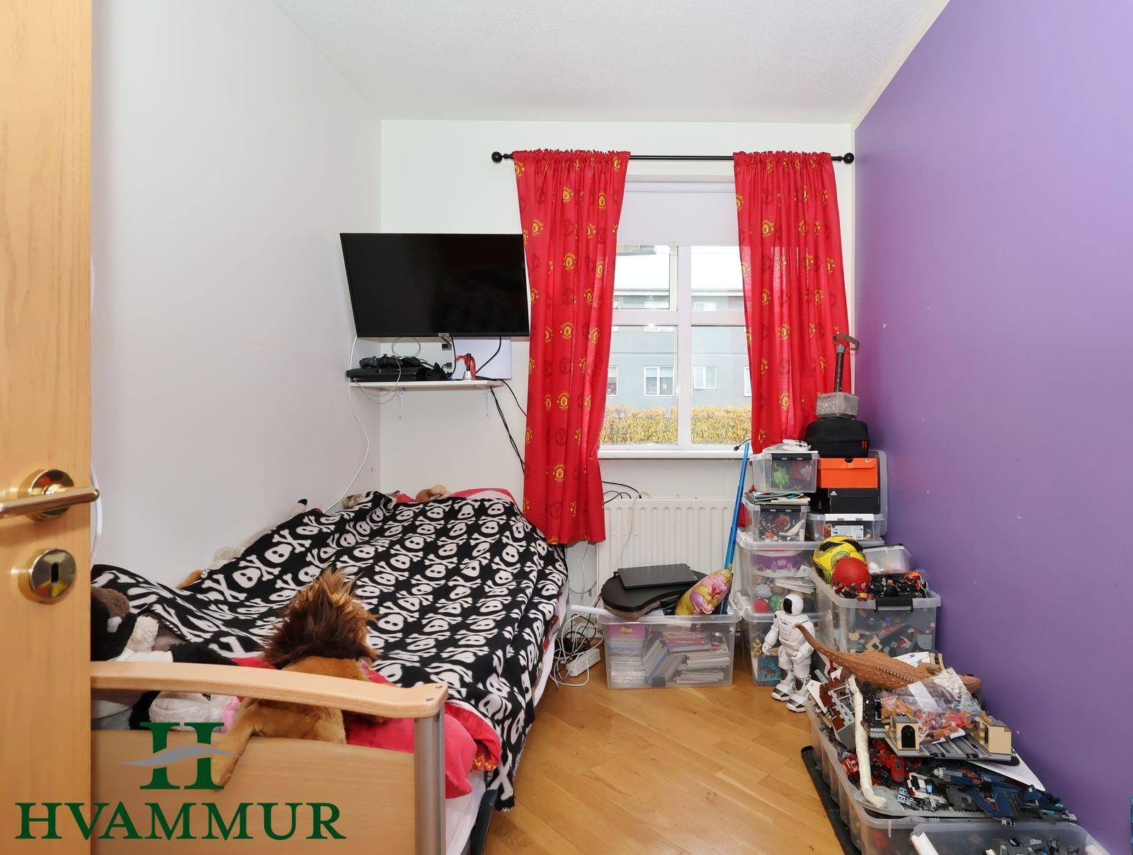 Geymsla er með ljósum dúk á gólfi. Gluggi er á geymslu og gæti hún því vel nýst sem fjórða svefnherbergið.