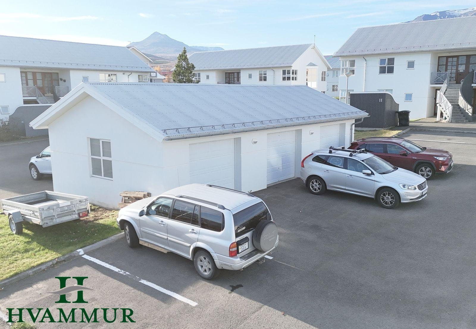 - Sameiginlegur geymsluskúr er fyrir framan húsið.