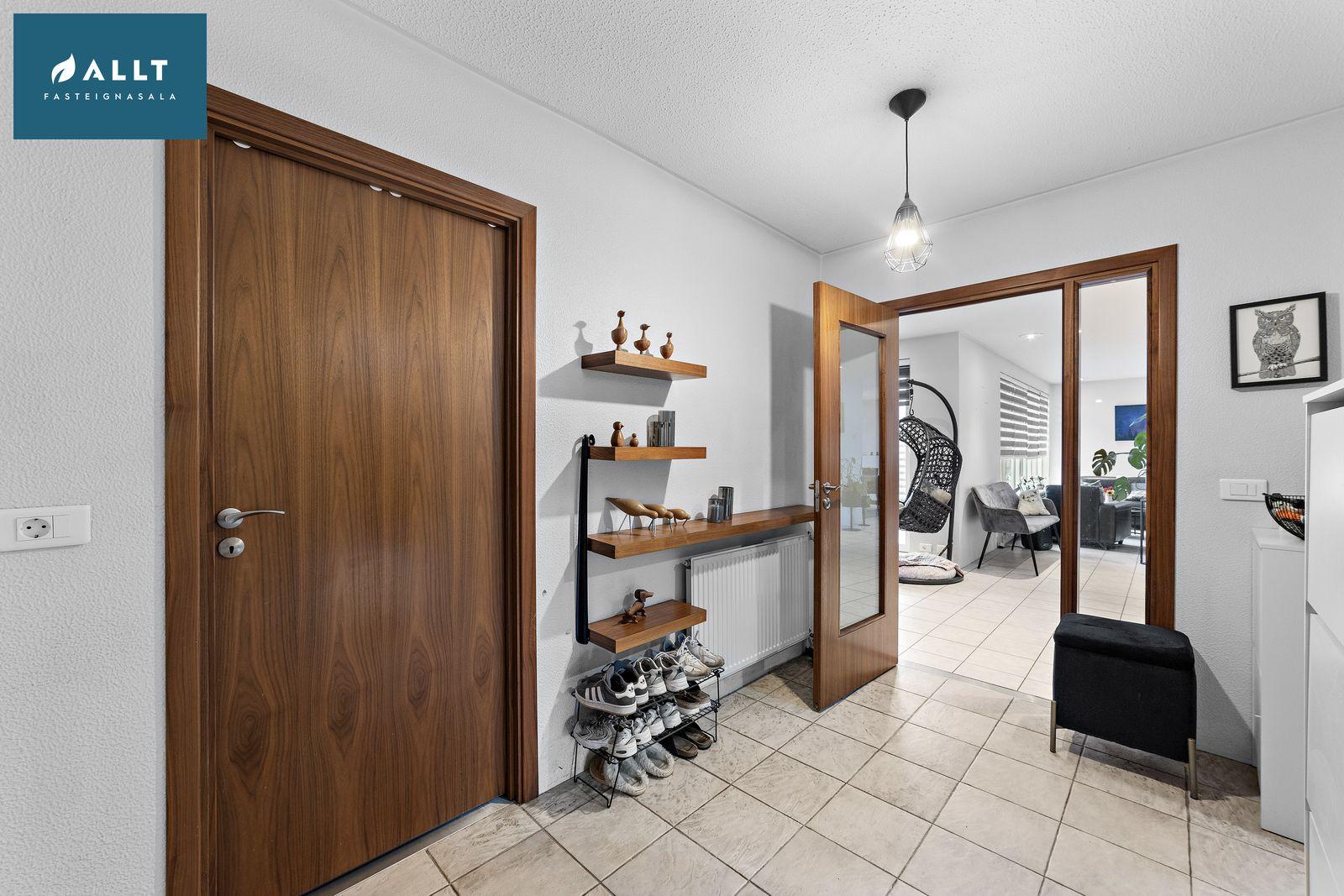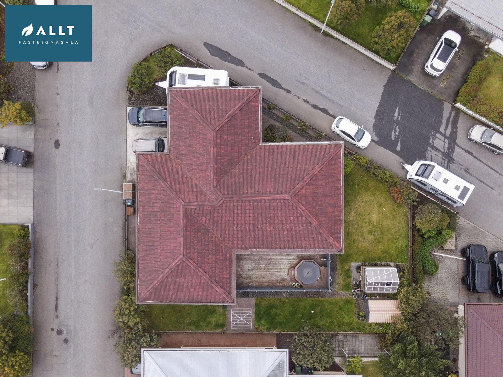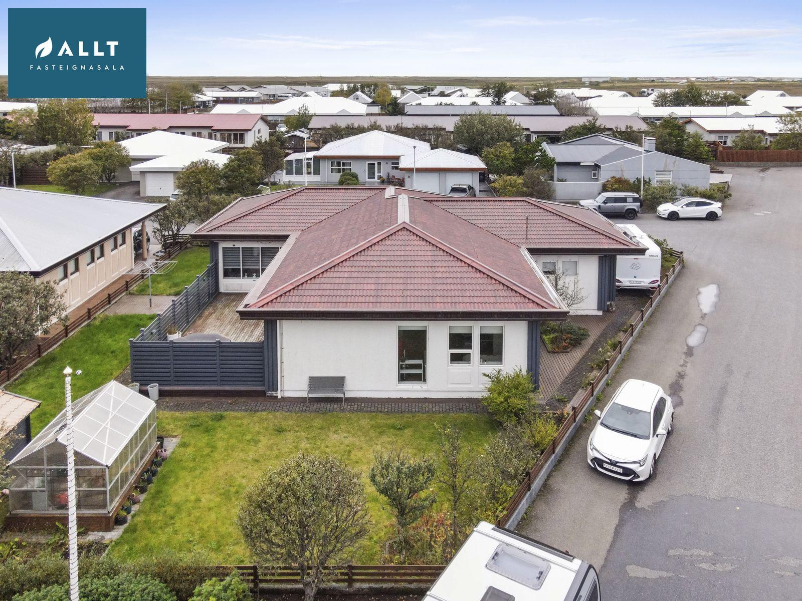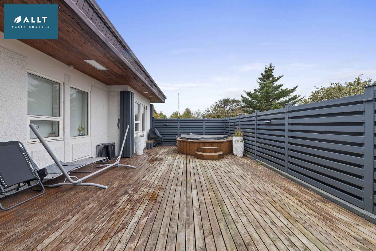 Alrými eignarinnar er opið og bjart. Herbergin eru öll mjög rúmgóð. Gólfhiti er í forstofu og báðum baðherbergjum. Búið er að endurnýja neysluvatn að mestu. Innkeyrsla og stétt er steypt og þar er hitalögn. Lóð er frágengin á snyrtilegan hátt. Verönd með skjólveggjum er á baklóð hússins, þar er heitur pottur.  Köld geymsla er á baklóð. Sólhús verður fjarlægt fyrir afhendingu eignar og er ekki fylgifé þess.