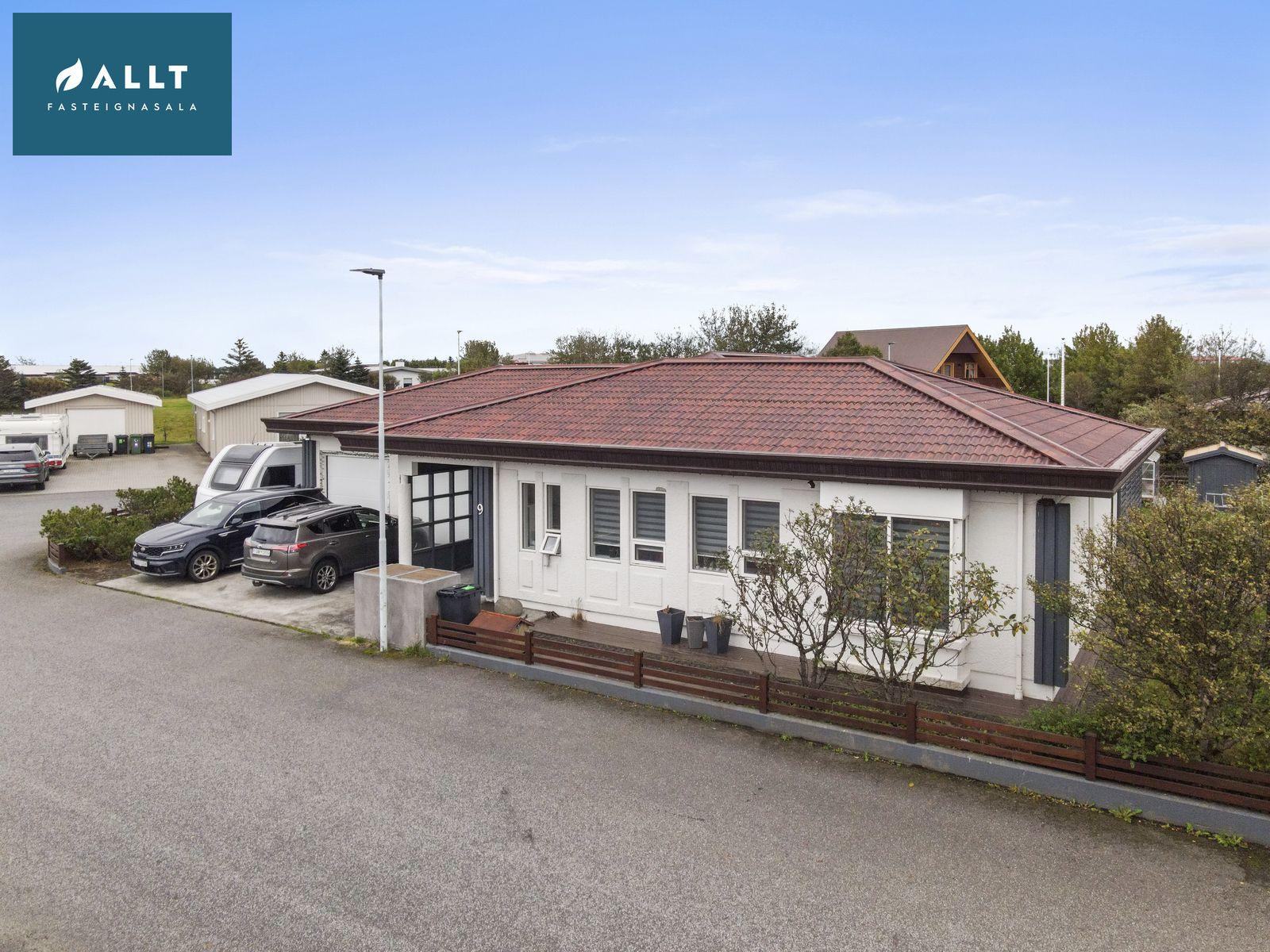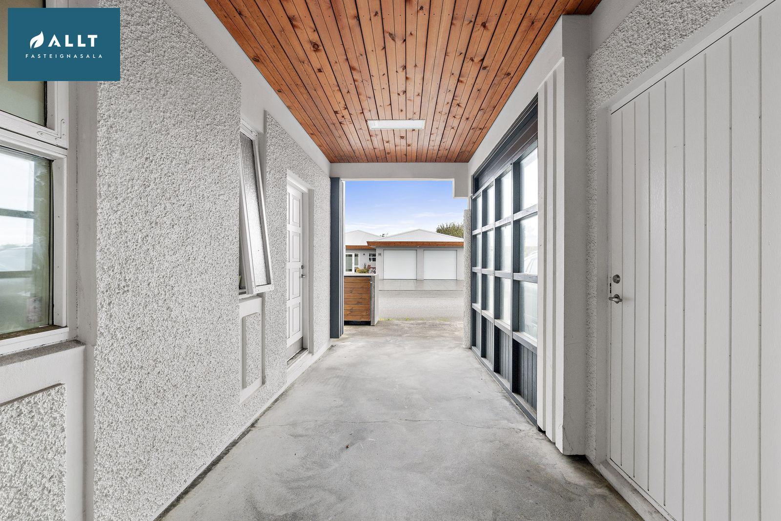 Bílskúr er tvöfaldur. Þaðan er aðgengi að góðu háalofti.