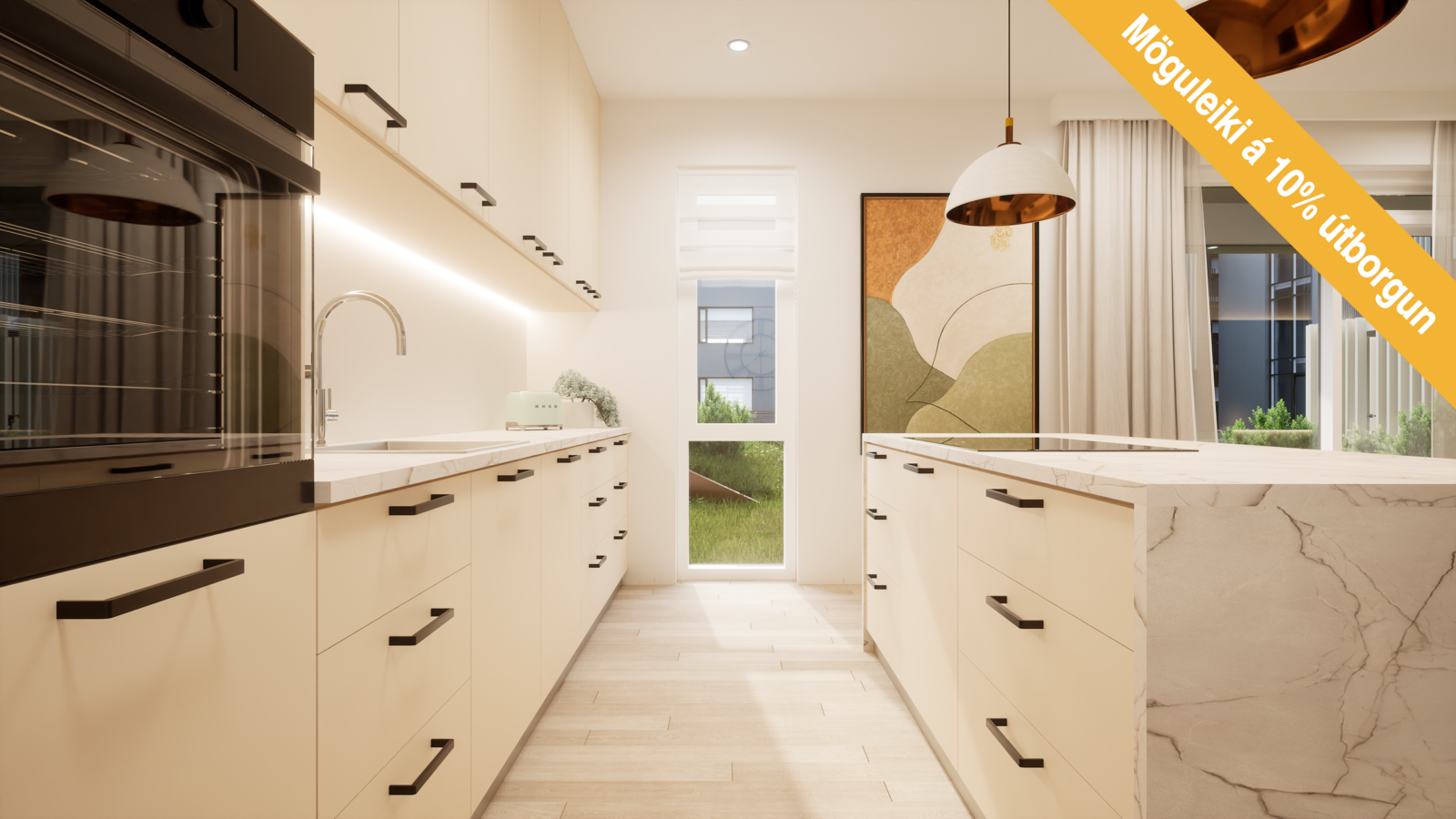 Íbúðirnar verða afhentar án gólfefna, nema á votrýmum sem verða flísalögð. Eldhúsinnréttingar eru sérsmíðuð af vandaðri gerð frá Axis.