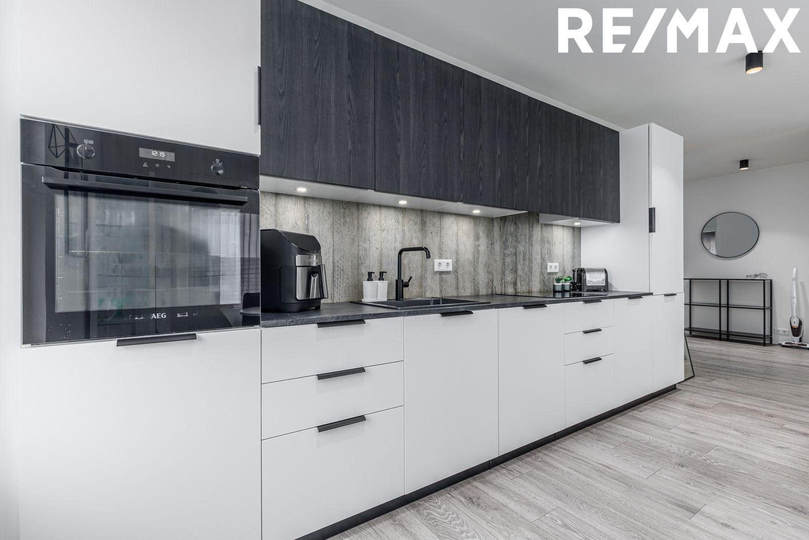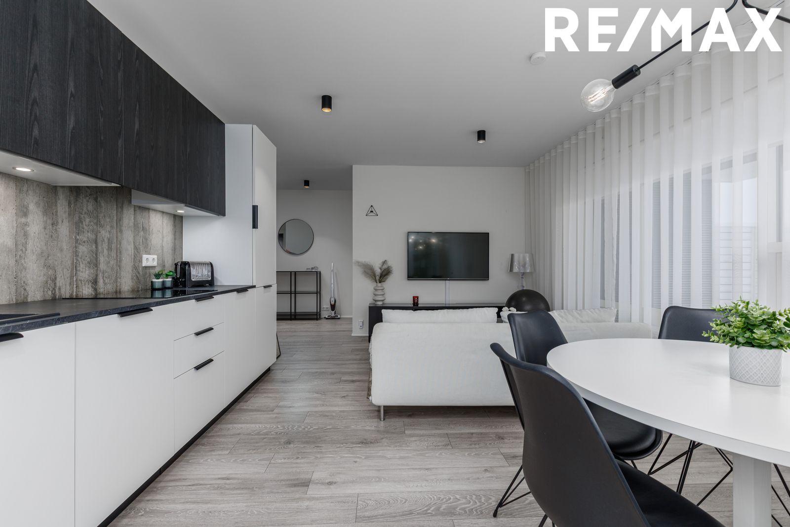 Stofa/borðstofa/eldhús:  Harðparket á gólfi. Bakstursofn í vinnuhæð. Innbygður kæli/frystiskápur sem og uppþvottavél. Hvít/svört eldhúsinnrétting. Spansuðuhelluborð.