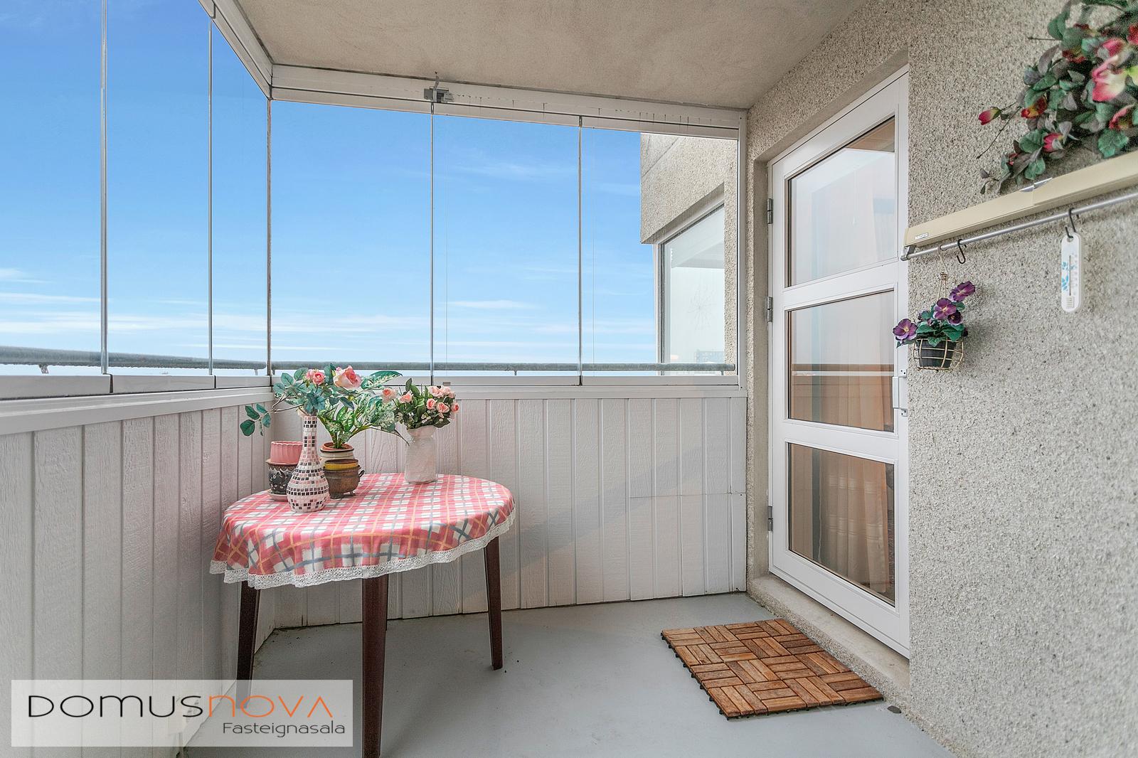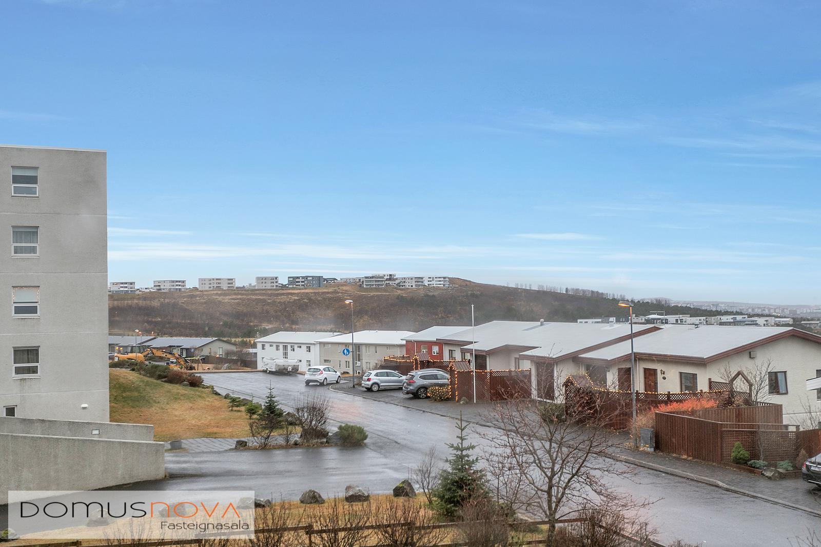 svalir, með svalalokun (90%) sem snúa til suðvesturs og er þaðan mjög gott útsýni til suð-austurs, suðurs og vesturs auk þess sem gott útsýni er úr stofu og báðum herbergjum.
