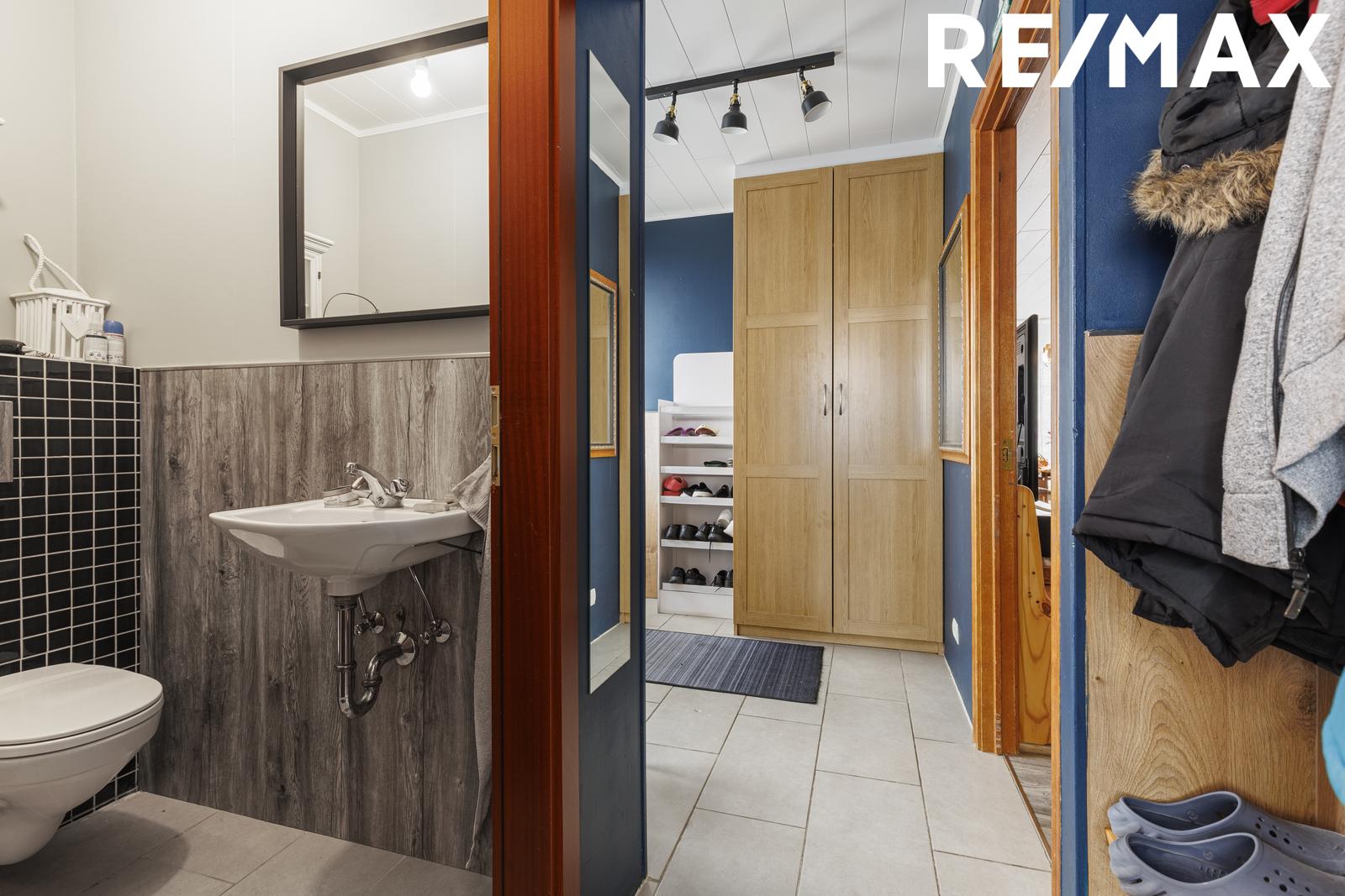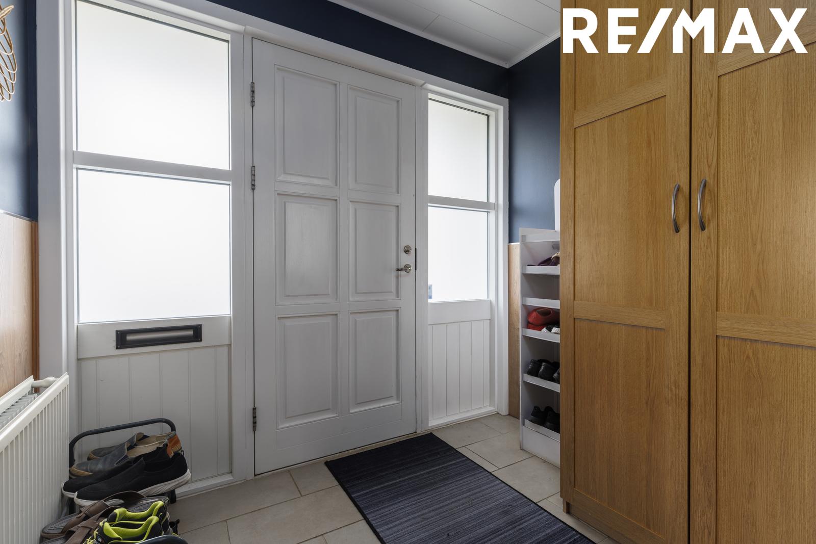 Þvottahús: Er inn af forstofu, flísar á gólfi, skápur, vaskur, útgengt á lóð.