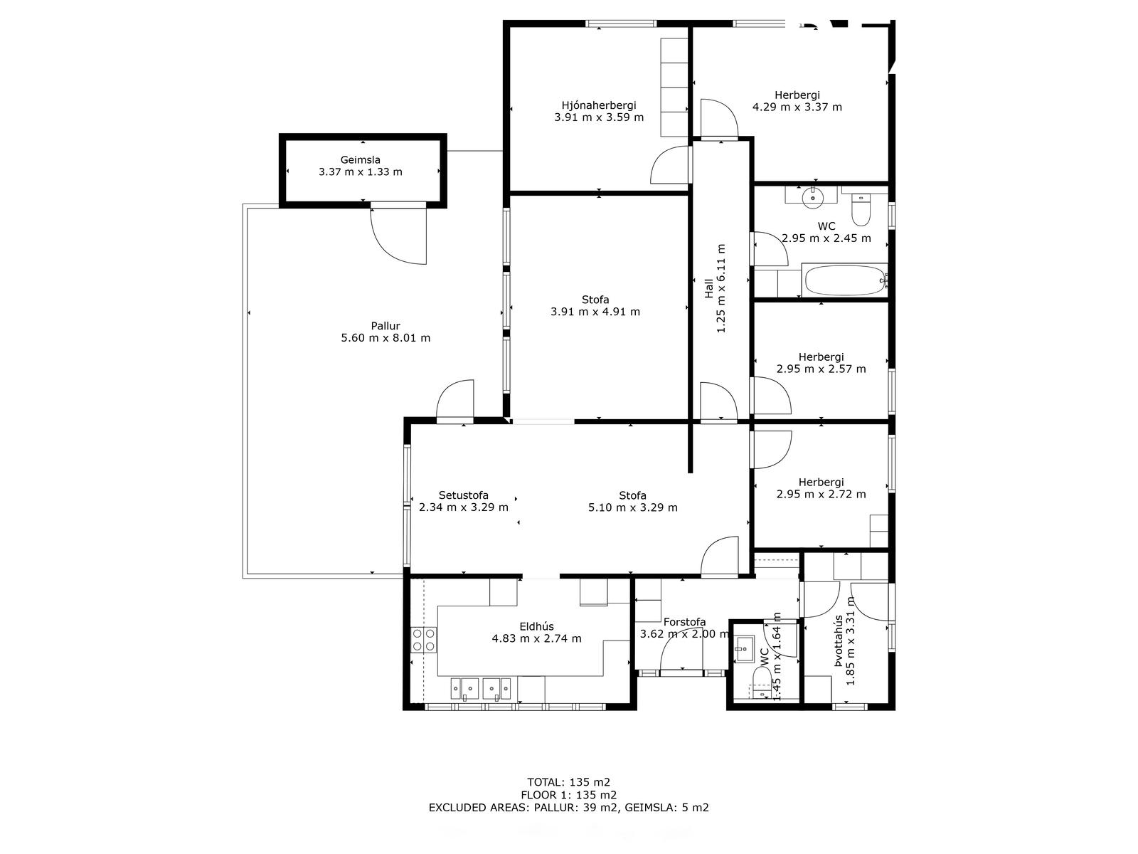 Svefnherbergi: Eru fjögur og er parket á gólfum þeirra