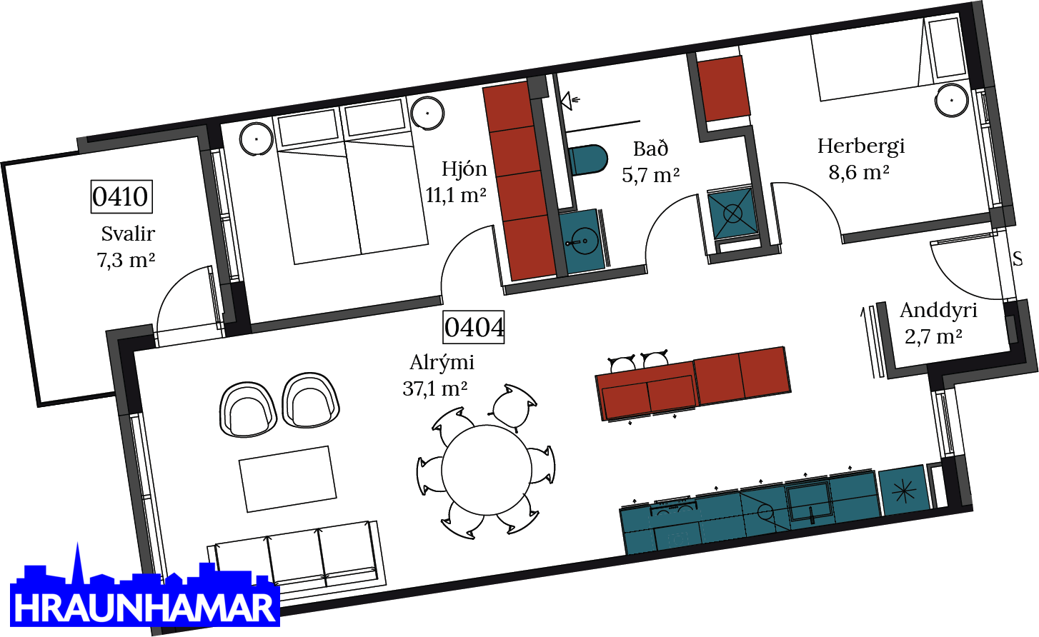 Íbúð 404 er þriggja herbergja, skráð 81,3 fermetrar með geymslu. Auk þess fylgir stæði með í lokaðri bílageymslu. Sjá nánar um íbúðina hér. Sjá söluvef hér.