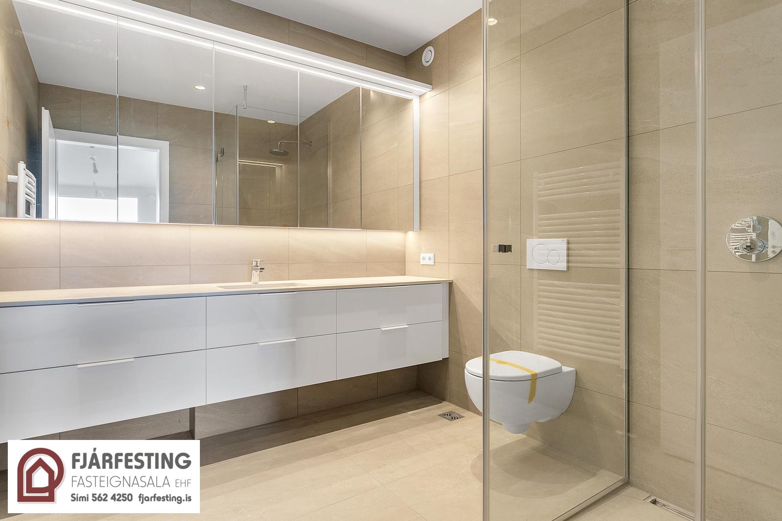 Í kjallara er stæði í lokaðri bílageymsla og góð sérgeymsla.