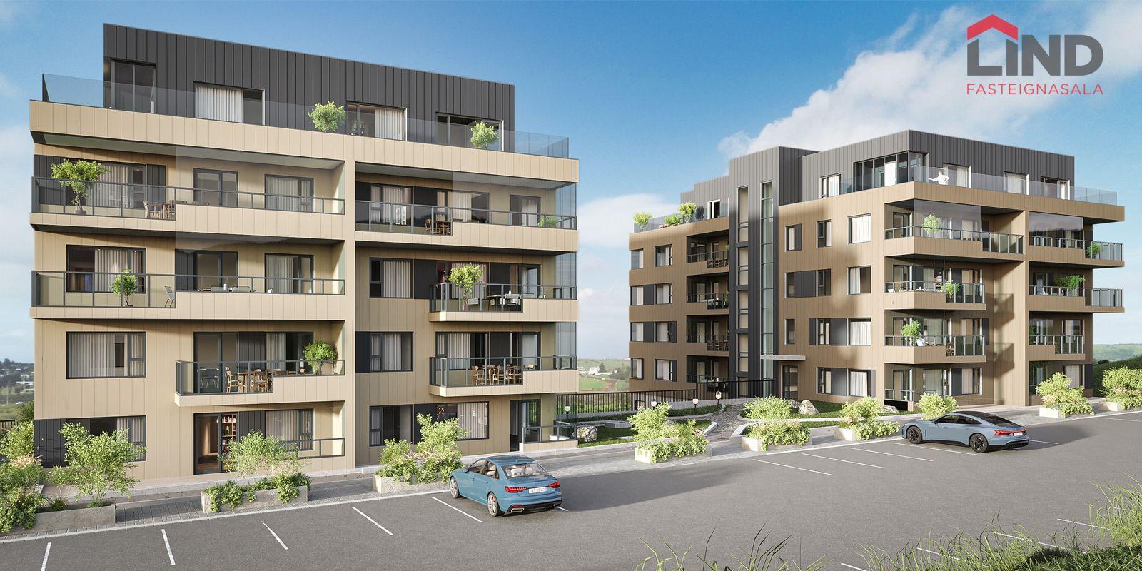 Íbúð 404: Er glæsileg 87,8 fermetra tveggja herbergja íbúð á 4. hæð með rúmgóðum 18,5 fermetra svölum til suðurs, baðherbergi og þvottaherbergi. Bílastæði í bílakjallara og rúmgóð 10,3 fermetra geymsla fylgir íbúðinni sem er staðsett í kjallara. Afhending er í febrúar eða mars 2026 með fyrirvara um að öryggisúttekt sé komin á húsið.