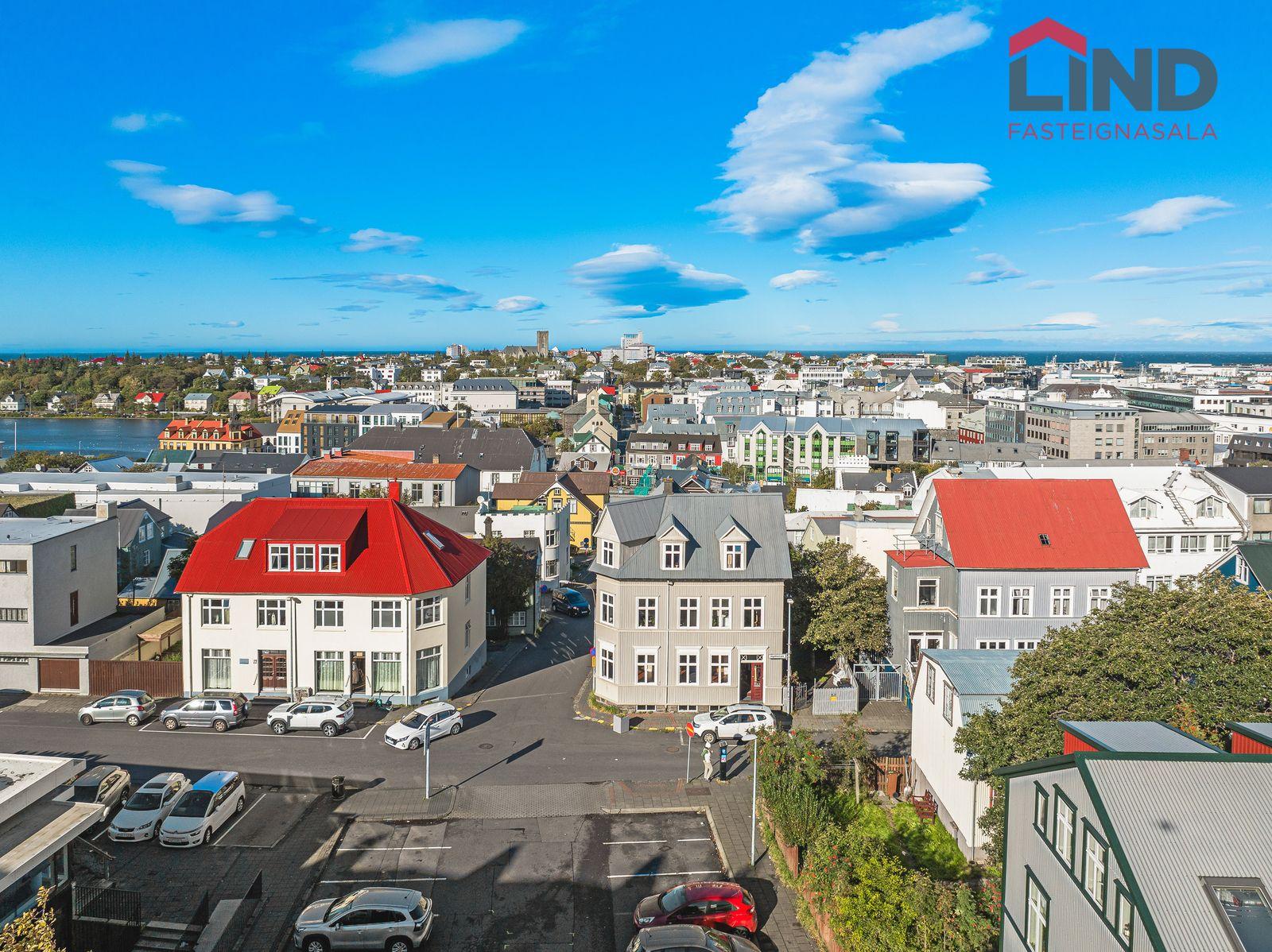 Afar fallegt útsýni er frá íbúðinni út á Reykjavíkurtjörn, að Háskóla Íslands, að Hótel Borg, Landakotskirkju og út á sjó við Reykjavíkurhöfn. Lóðin er 197,0 fermetrar að stærð og sameiginleg. Sameiginlegur bakgarður til norðurs/vesturs.