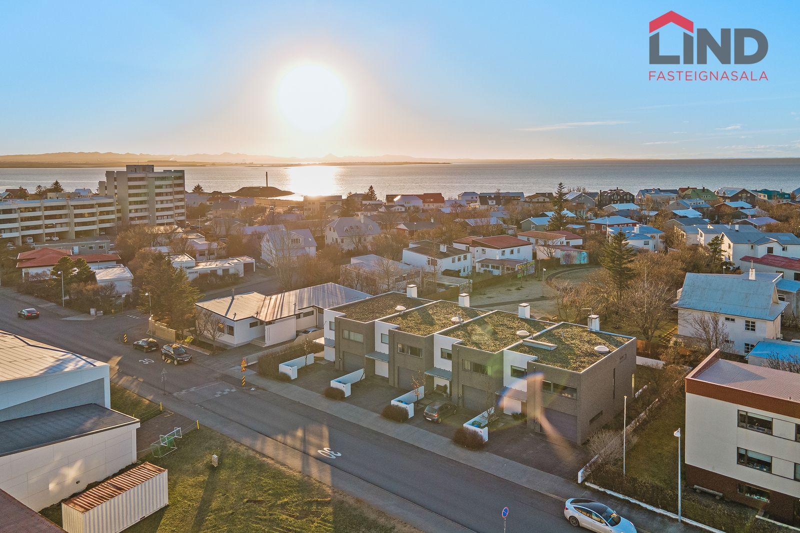 Tvö bílastæði framan við húsið og snjóbræðsla í stéttum.