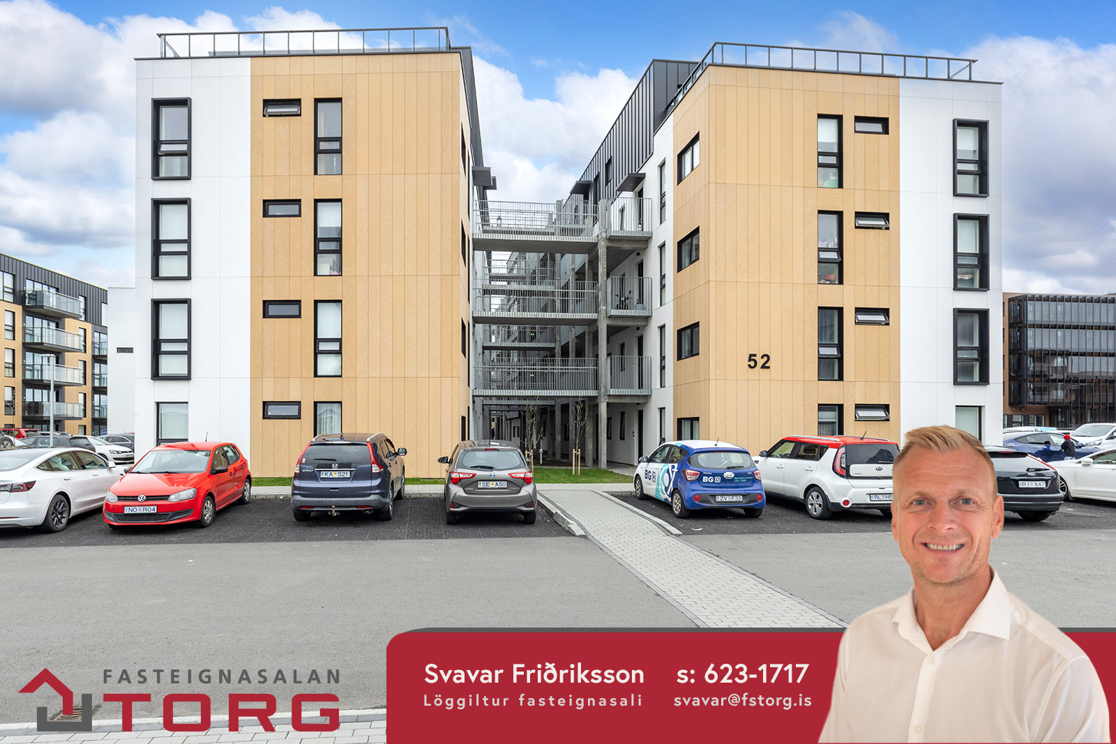 Fasteignasalan TORG og Svavar Friðriksson, löggiltur fasteignasali, kynna: ***LAUS STRAX*** Um er að ræða góða, 93,1m2, fjögurra herbergja, íbúð á fjórðu hæð (404), í góðu lyftuhúsi. Sameiginlegur inngangur er inn í húsið en sérinngangur er af svölum. Íbúðin skiptist í anddyri með skáp, eldhús með uppþvottavél sem fylgir með sé þess óskað, stór og björt stofa og borðstofa, tvö góð svefnherbergi og flísalagt baðherbergi með sturtu og þvottahúsi. Búið er að parketleggja íbúðina með fallegu vínylparketi frá Birgisson. Sérgeymsla fylgir íbúðinni í sameign. Dyrasími með myndavél. Öflugt húsfélag er í fjölbýlishúsinu sem er í samstarfi við Eignaumsjón. Vagna- og hjólageymsla er í sameign hússins. Góðar,viðarklæddar, svalir með glerveggjum. Stutt er í skóla, leikskóla og aðra þjónustu sem og útivistarsvæði.