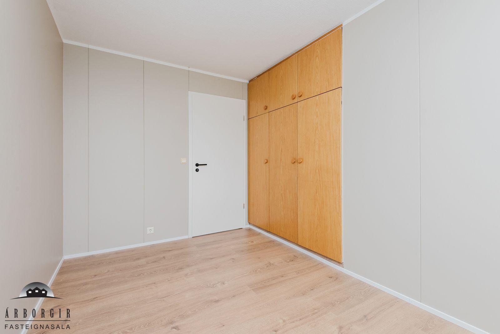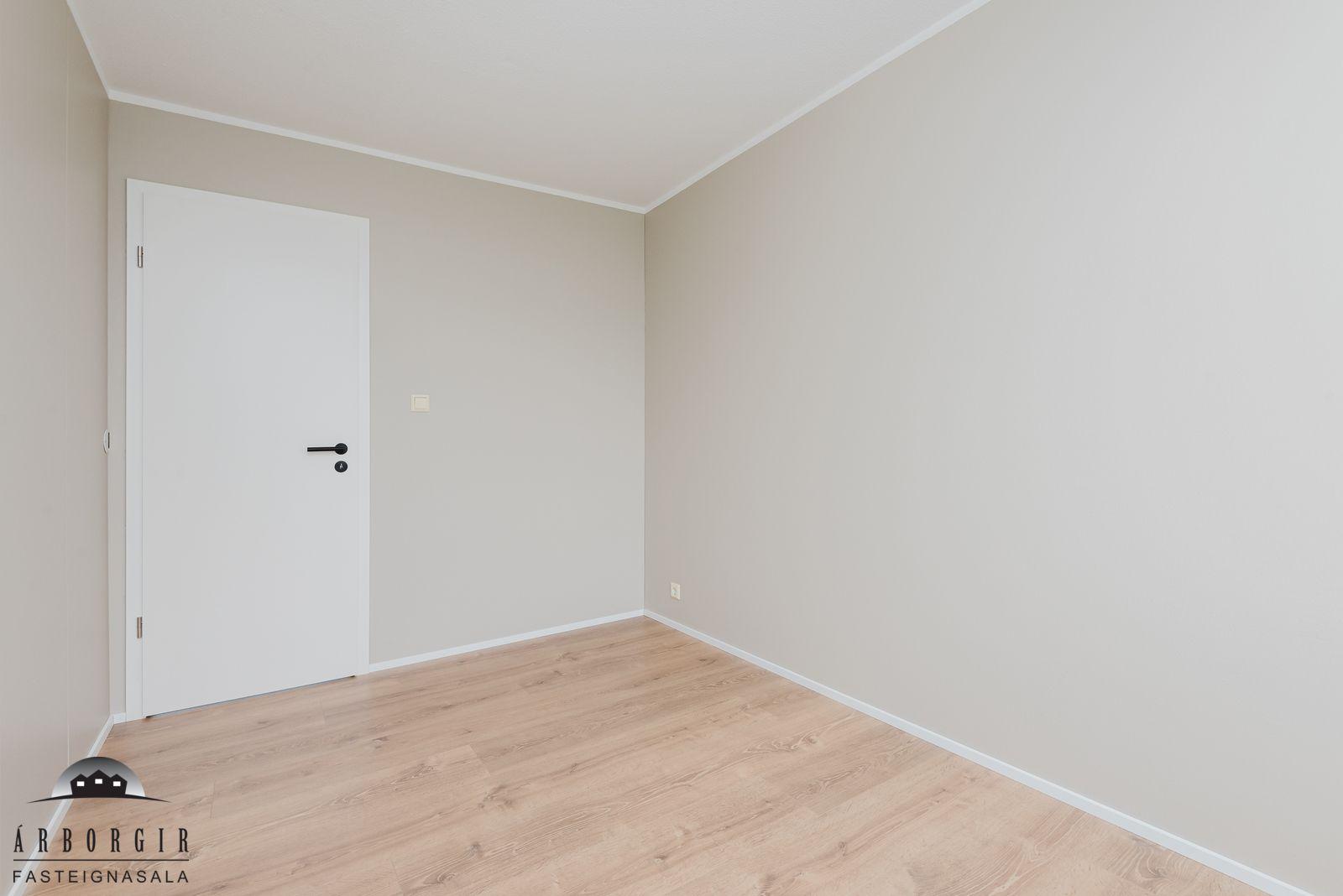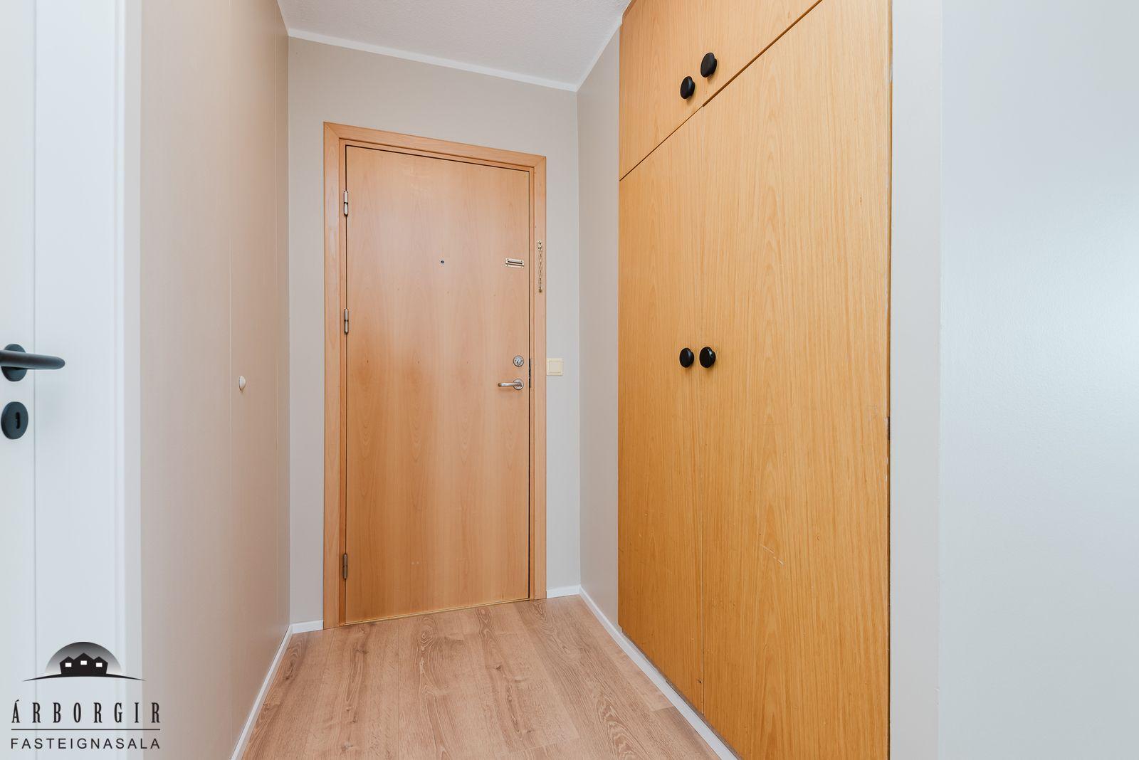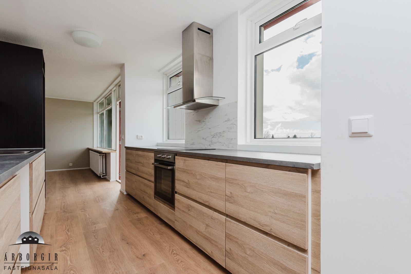 Nánari lýsing: Forstofa: Parket á gólfi og góður fataskápur. Herbergin: Eru fjögur, þrjú af þeim með góðum skápum og eitt án skápa. Parket er á gólfi. Baðherbergi: Þar inni er baðkar með sturtu. Dúkur er á gólfi. Salerni: Þar er klósett og handlaug, dúkur er á gólfi. Stofa: Er rúmgóð, þar er parket á gólfi og útgengt á einar af tvennum yfirbyggðum svölum íbúðarinnar. Eldhús: Er á milli stofu og borðstofu, þar er smekkleg rúmgóð innrétting. Parket er á gólfi. Borðstofa: Er með parket á gólfi og þar er útgengt á yfirbyggðar svalir.