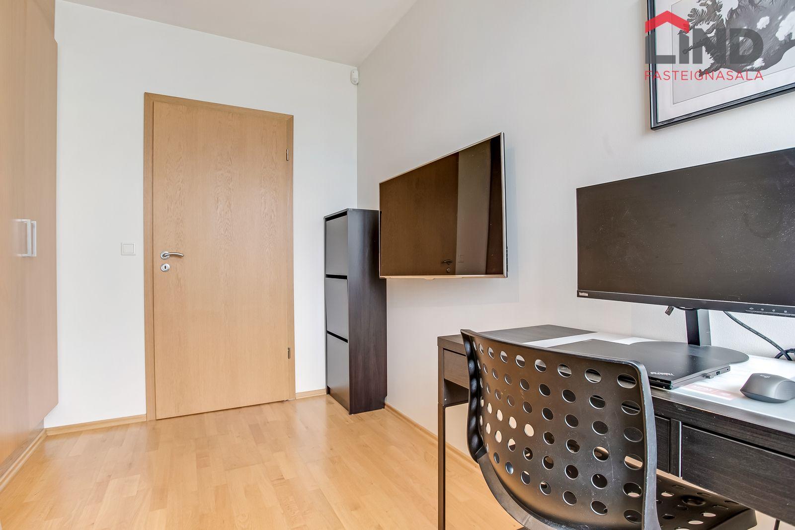 Stofan er rúmgóð og björt og opin inn í eldhúskrók. Parket á gólfi. Gengið er út á yfirbyggðar svalir frá stofu sem snúa í suður.