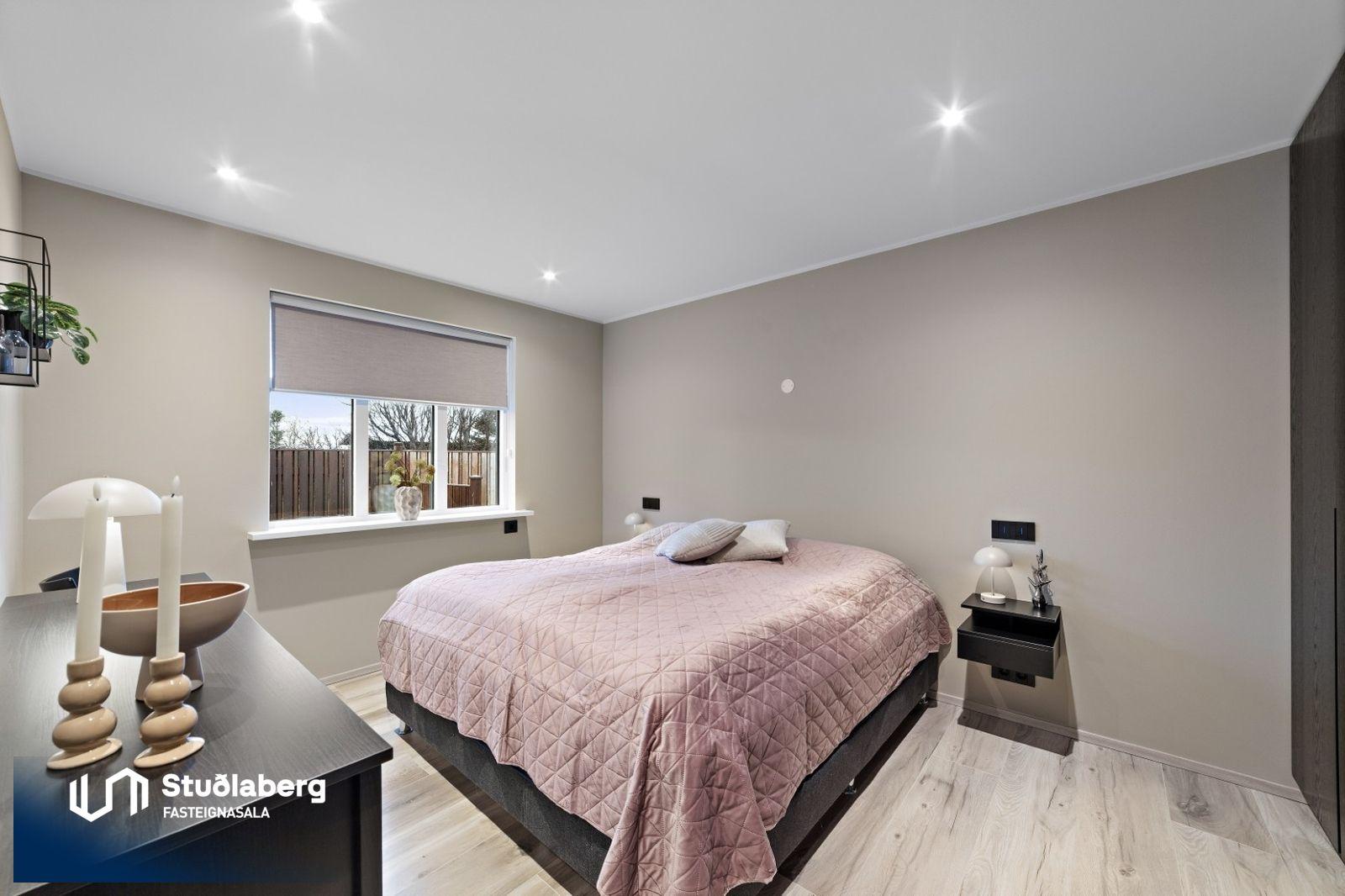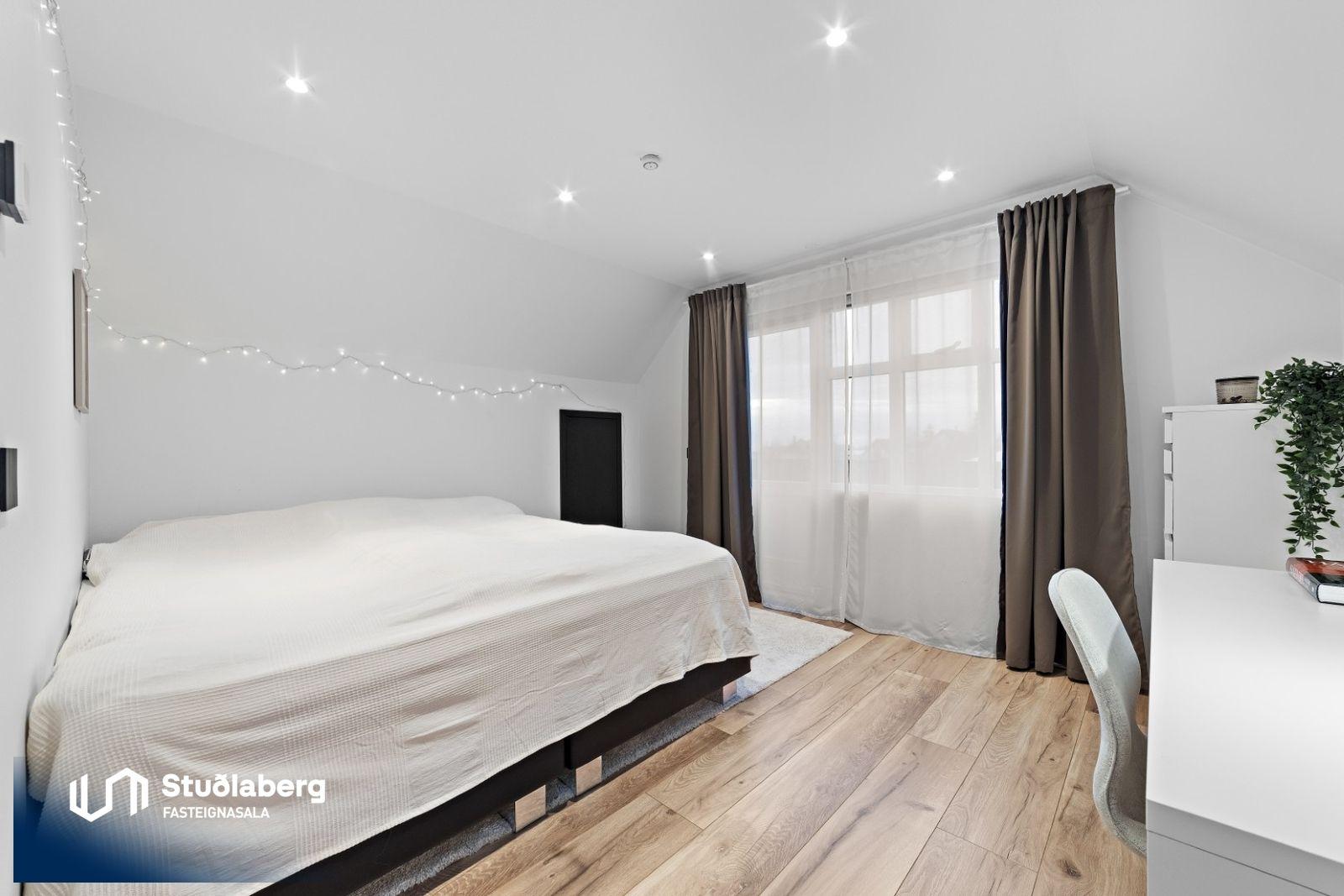 Svefnherbergin eru tvö á efri hæð og eru þau bæði mjög rúmgóð, svalir eru út frá öðru herberginu.