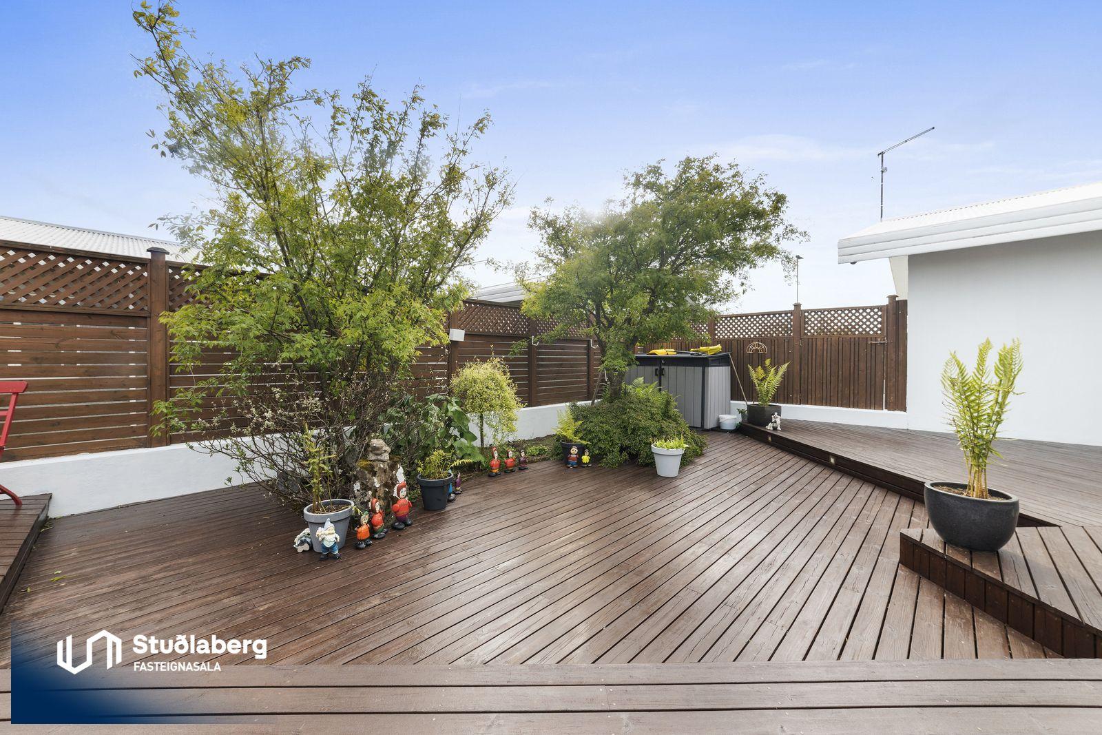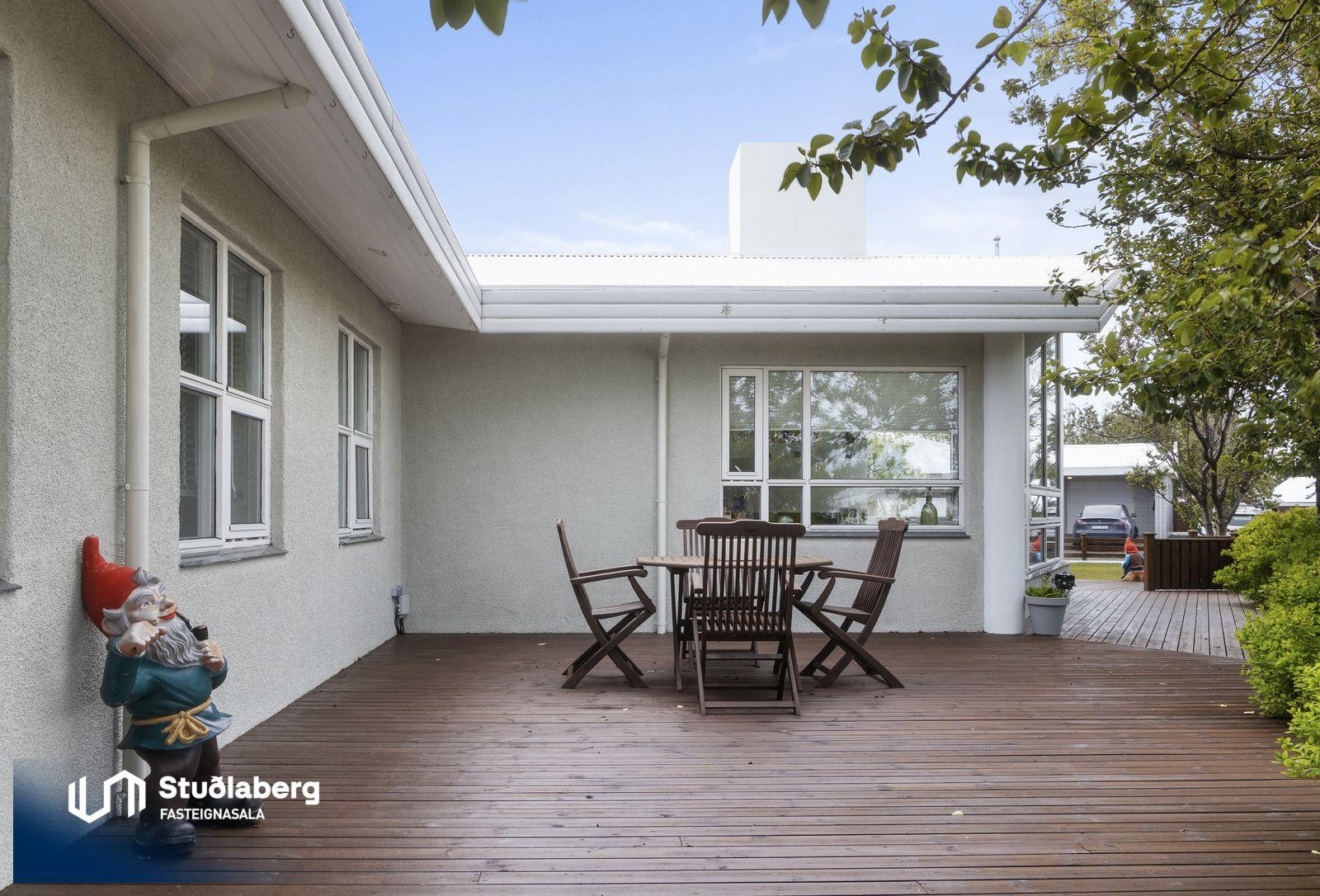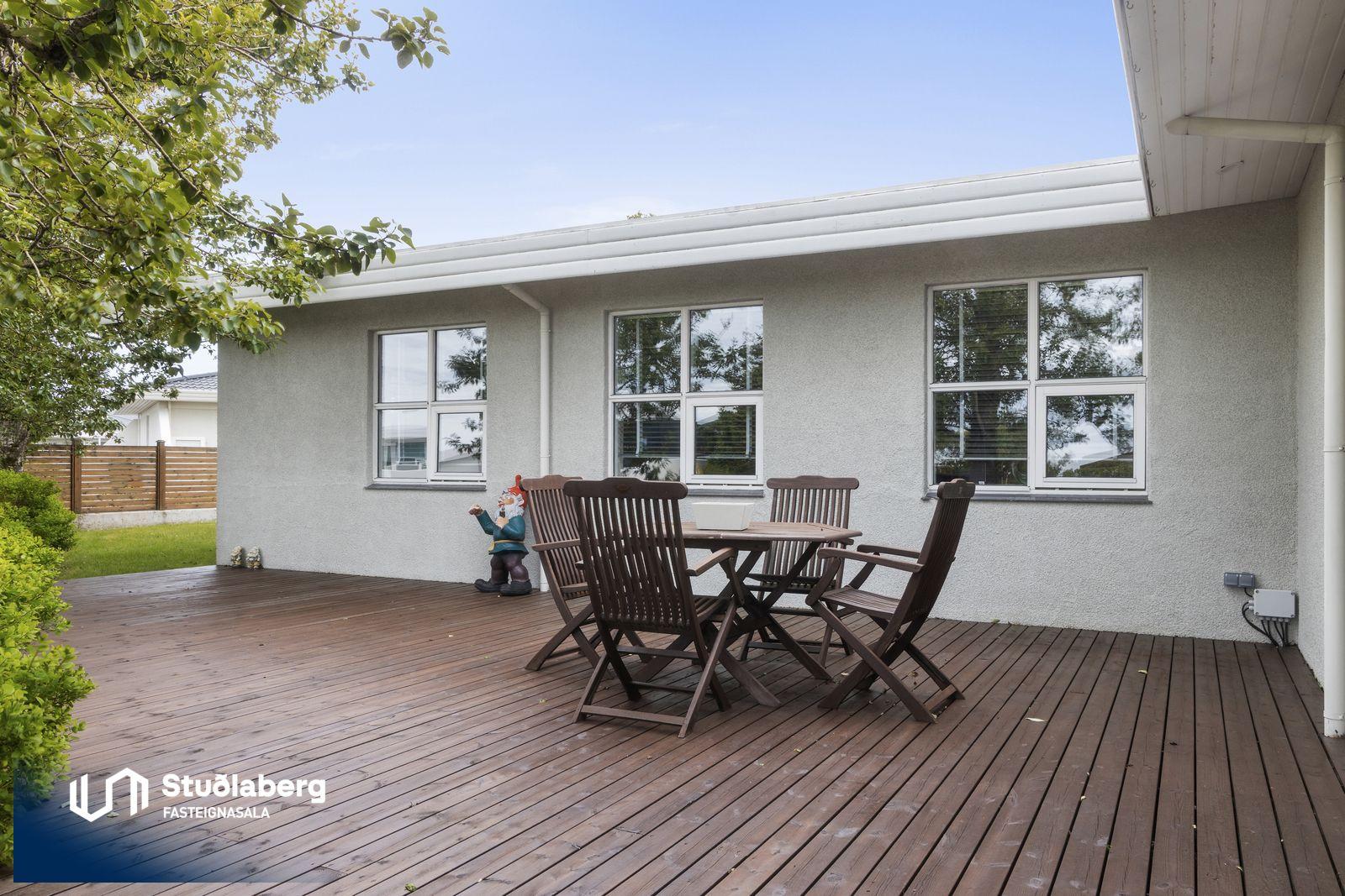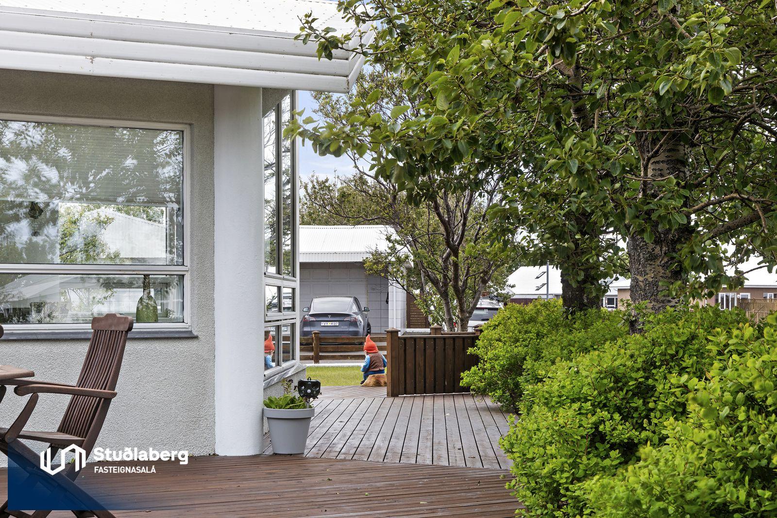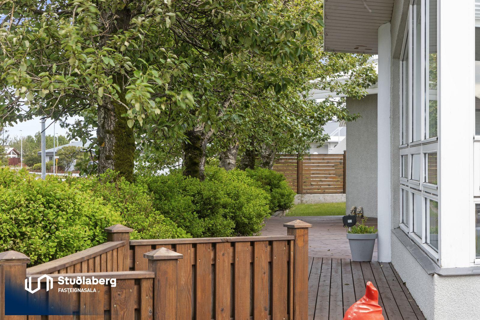 *Veröndin er stór og afgirt. *fallegur viðarpallur með heitum pott. *stórt steypt upphitað bílaplan.