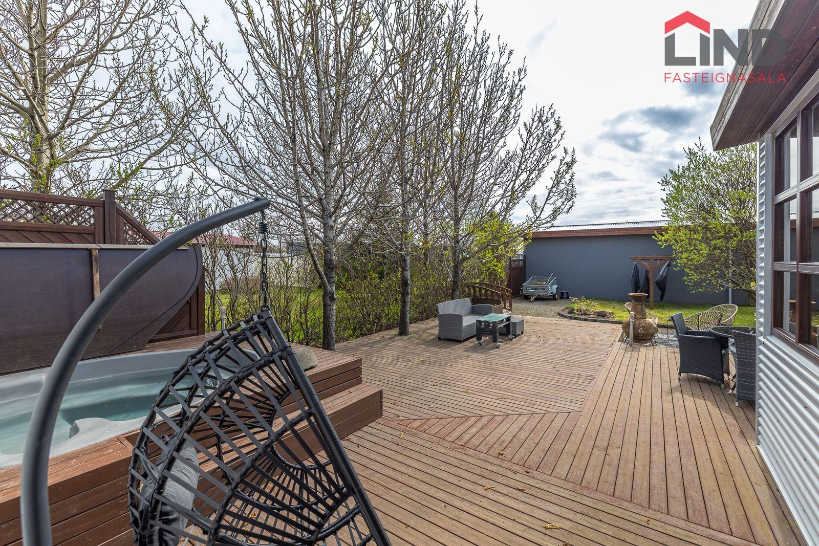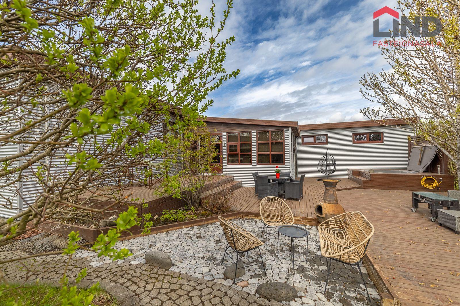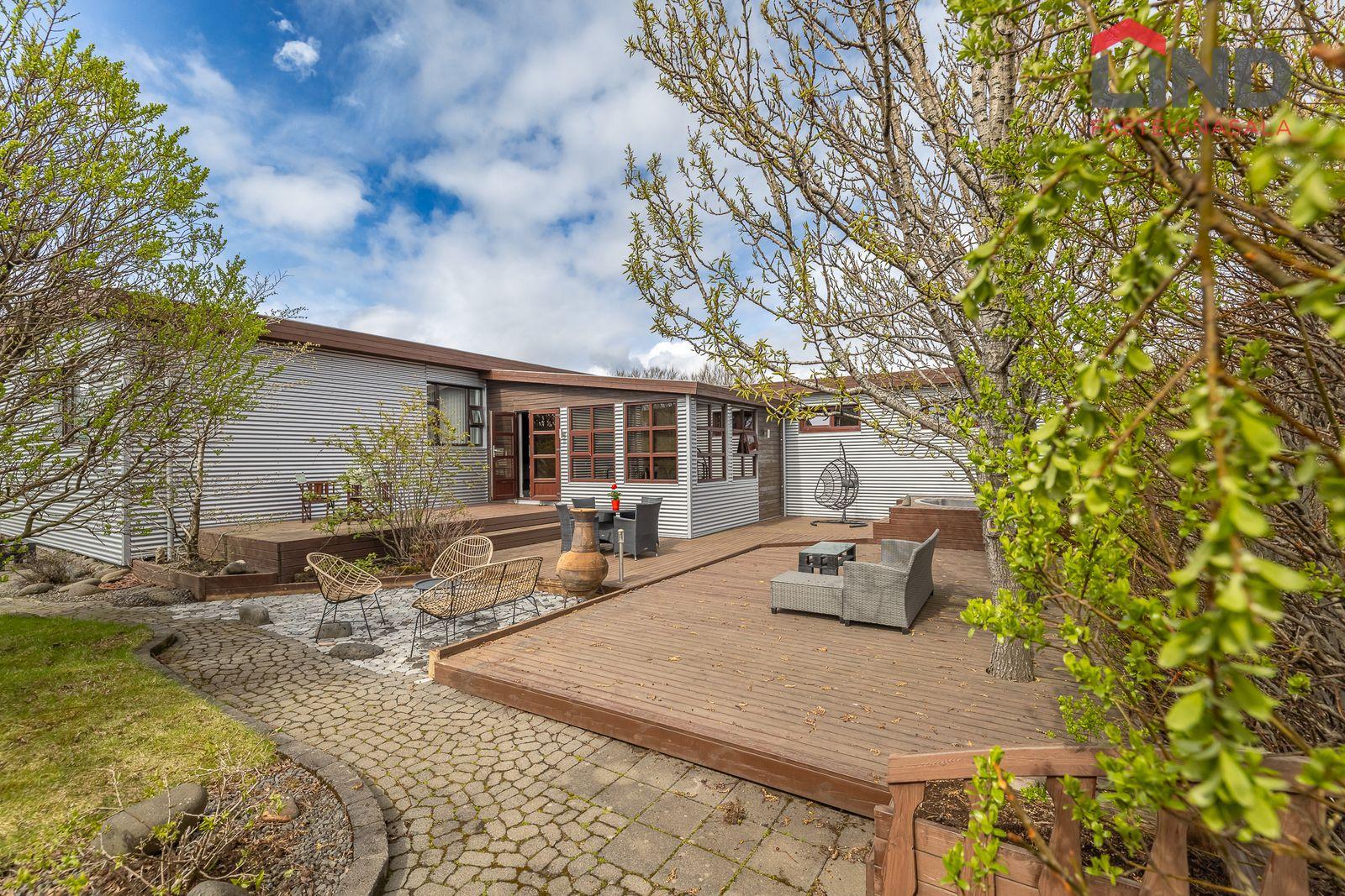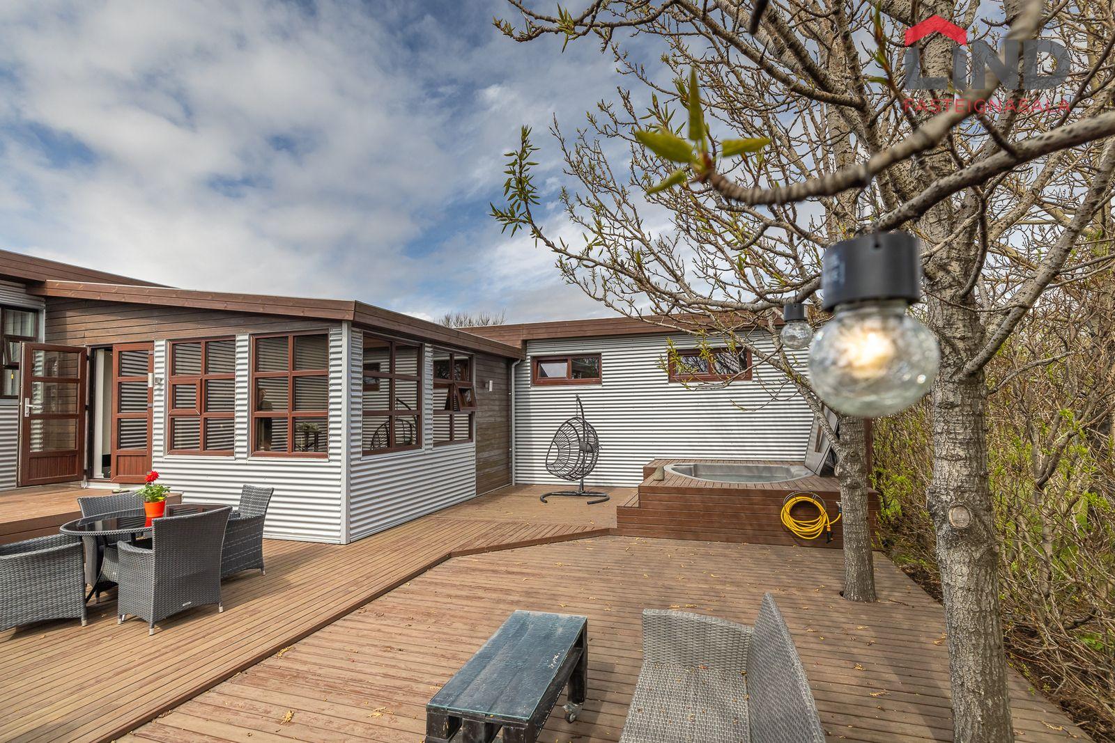 LIND fasteignasala og Arinbjörn Marinósson, löggiltur fasteignasali, kynna einstaklega bjart og rúmgott 6 herbergja 206.5 fm einbýlishús á einni hæð við Setberg 7 í Þorlákshöfn. Birt stærð eignar er 206.5 fm samkvæmt Þjóðskrá Íslands, þar af er 59 fm bílskúr með gryfju sem minkaður hefur verið með léttum veggjum niður í ca 30 fm og bætt hefur verið við tveimur svefnherbergjum og gestasnyrtingu. Húsið að innan sem utan er mjög snyrtilegt og smekklegt. Eignin hefur verið mikið endurnýjuð á síðastliðnum árum og hefur fengið mjög gott viðhald. Húsið stendur á 758 fm lóð sem er virkilega snyrtileg og gróin. Gengið er úr eldhúsi í stóran bakgarð með sólpalli og heitum potti.