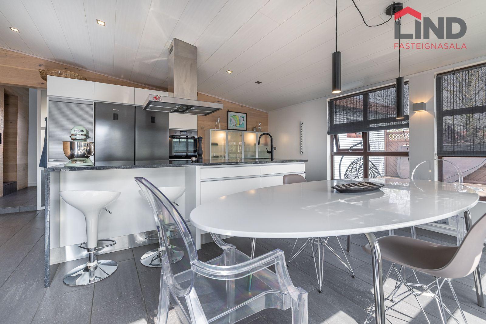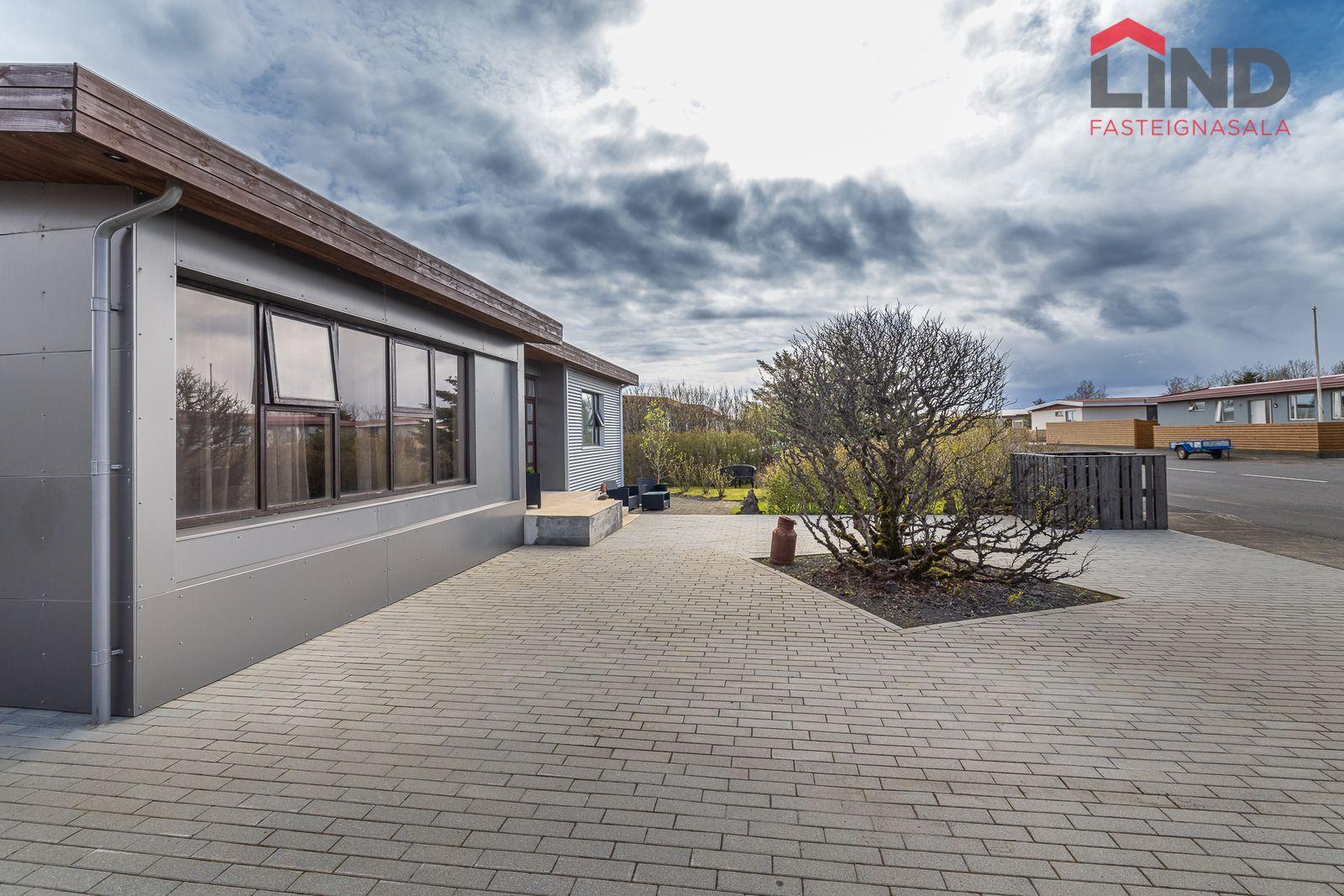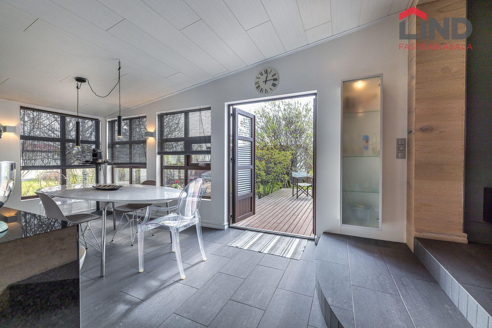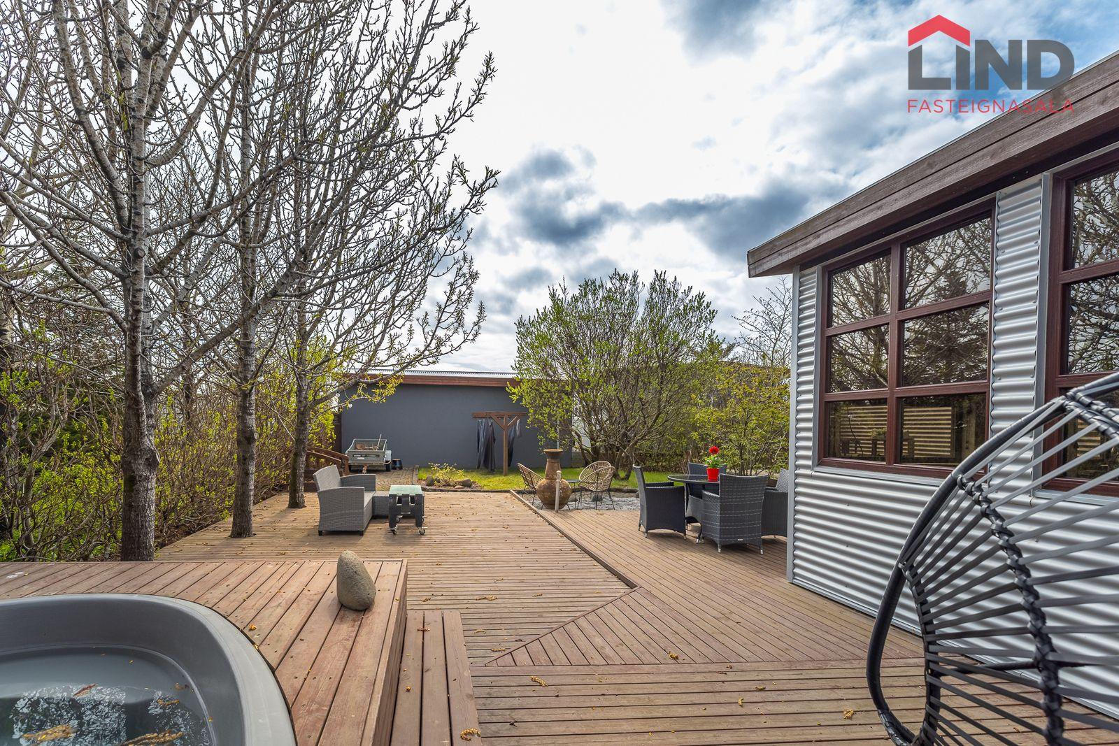 LIND fasteignasala og Arinbjörn Marinósson, löggiltur fasteignasali, kynna einstaklega bjart og rúmgott 6 herbergja 206.5 fm einbýlishús á einni hæð við Setberg 7 í Þorlákshöfn. Birt stærð eignar er 206.5 fm samkvæmt Þjóðskrá Íslands, þar af er 59 fm bílskúr með gryfju sem minkaður hefur verið með léttum veggjum niður í ca 30 fm og bætt hefur verið við tveimur svefnherbergjum og gestasnyrtingu. Húsið að innan sem utan er mjög snyrtilegt og smekklegt. Eignin hefur verið mikið endurnýjuð á síðastliðnum árum og hefur fengið mjög gott viðhald. Húsið stendur á 758 fm lóð sem er virkilega snyrtileg og gróin. Gengið er úr eldhúsi í stóran bakgarð með sólpalli og heitum potti.