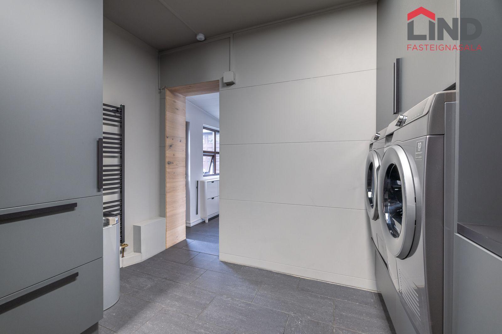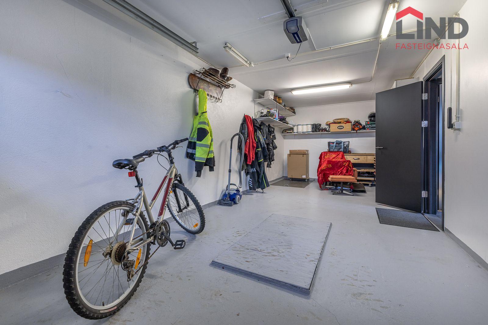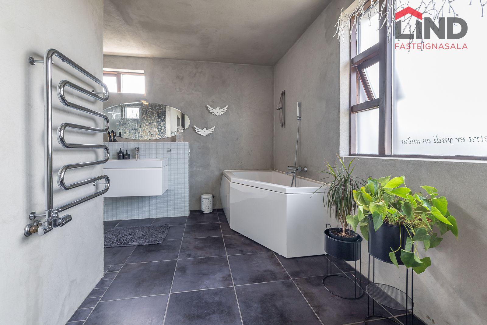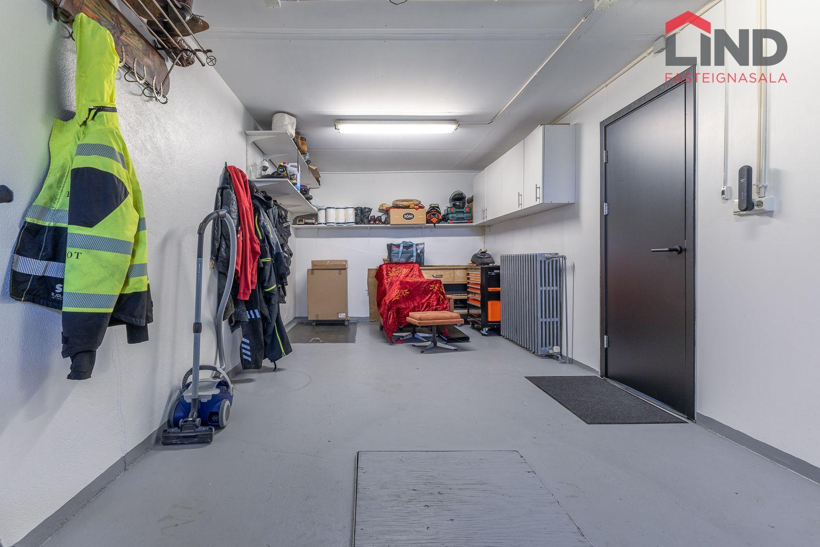 Eignin skiptist í anddyri, 3 - 4 svefnherbergi (hjónaherbergið er sameinað úr tveimur svefnherbergjum), mjög rúmgott og fallegt eldhús, sjónvarpshol, baðherbergi með baðkari og sturtu, gestasalerni, þvottahús með snúrum, virkilega miklu vinnuplássi og mikilli og góðri innréttingu ásamt bílskúr með gryfju.