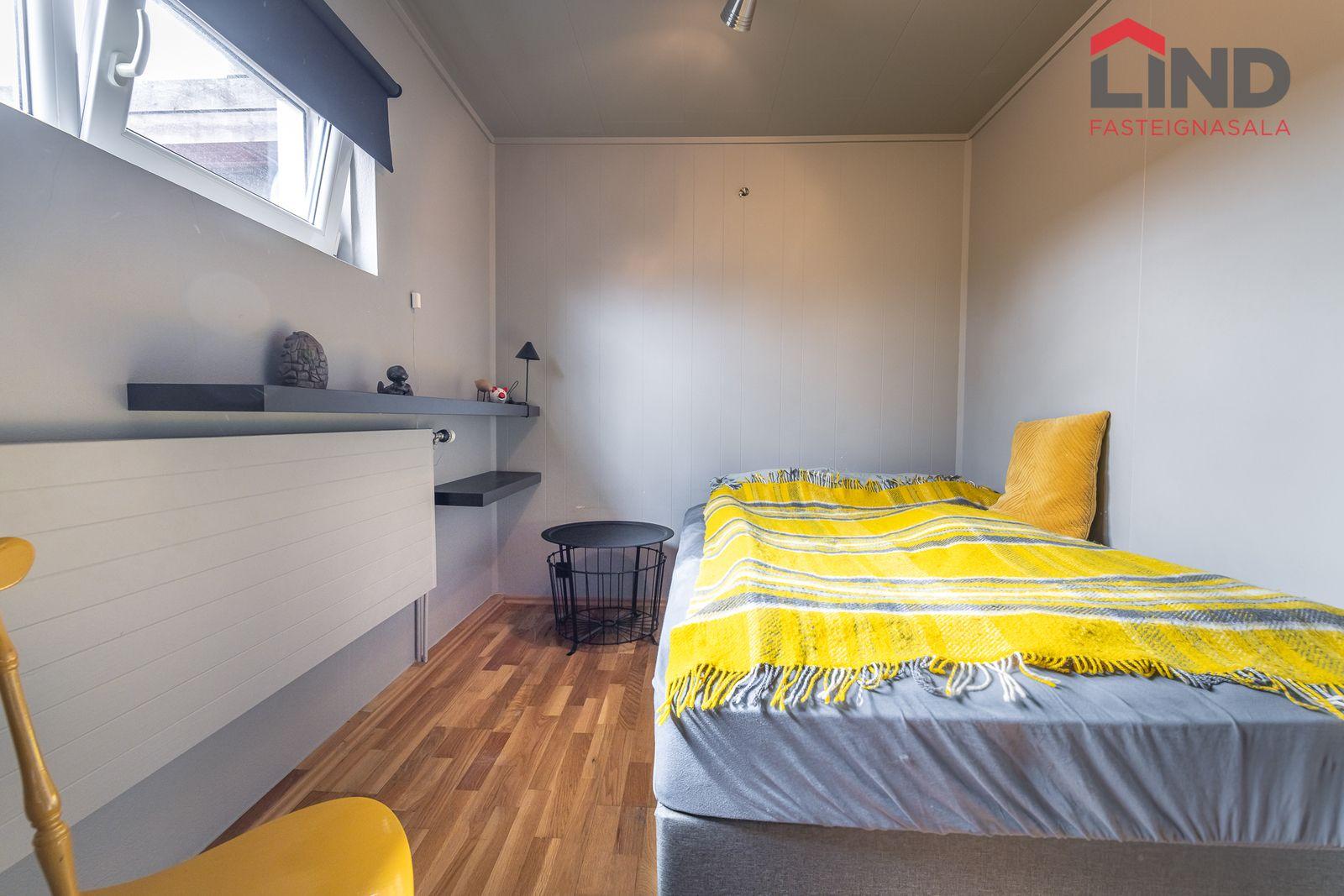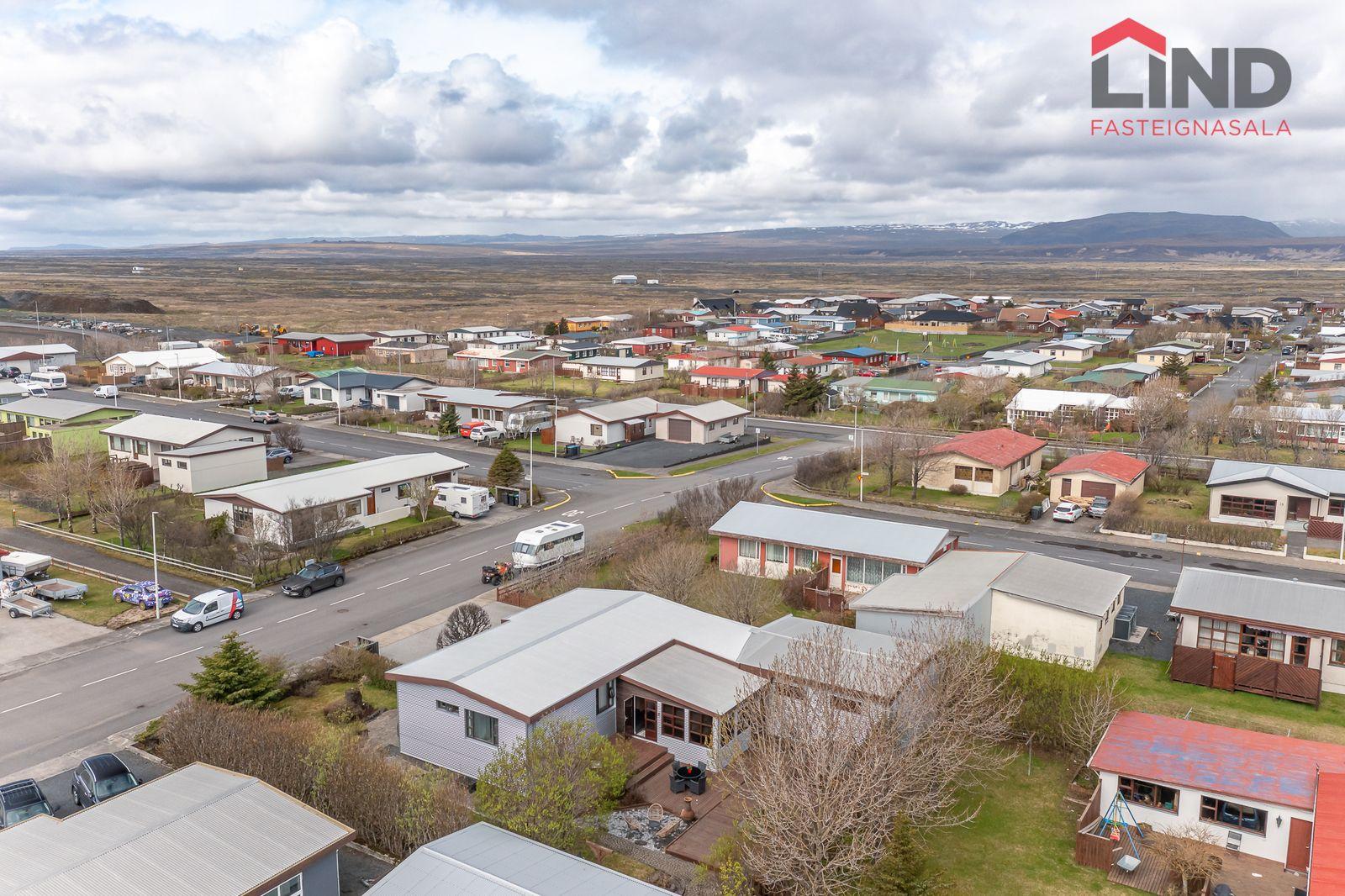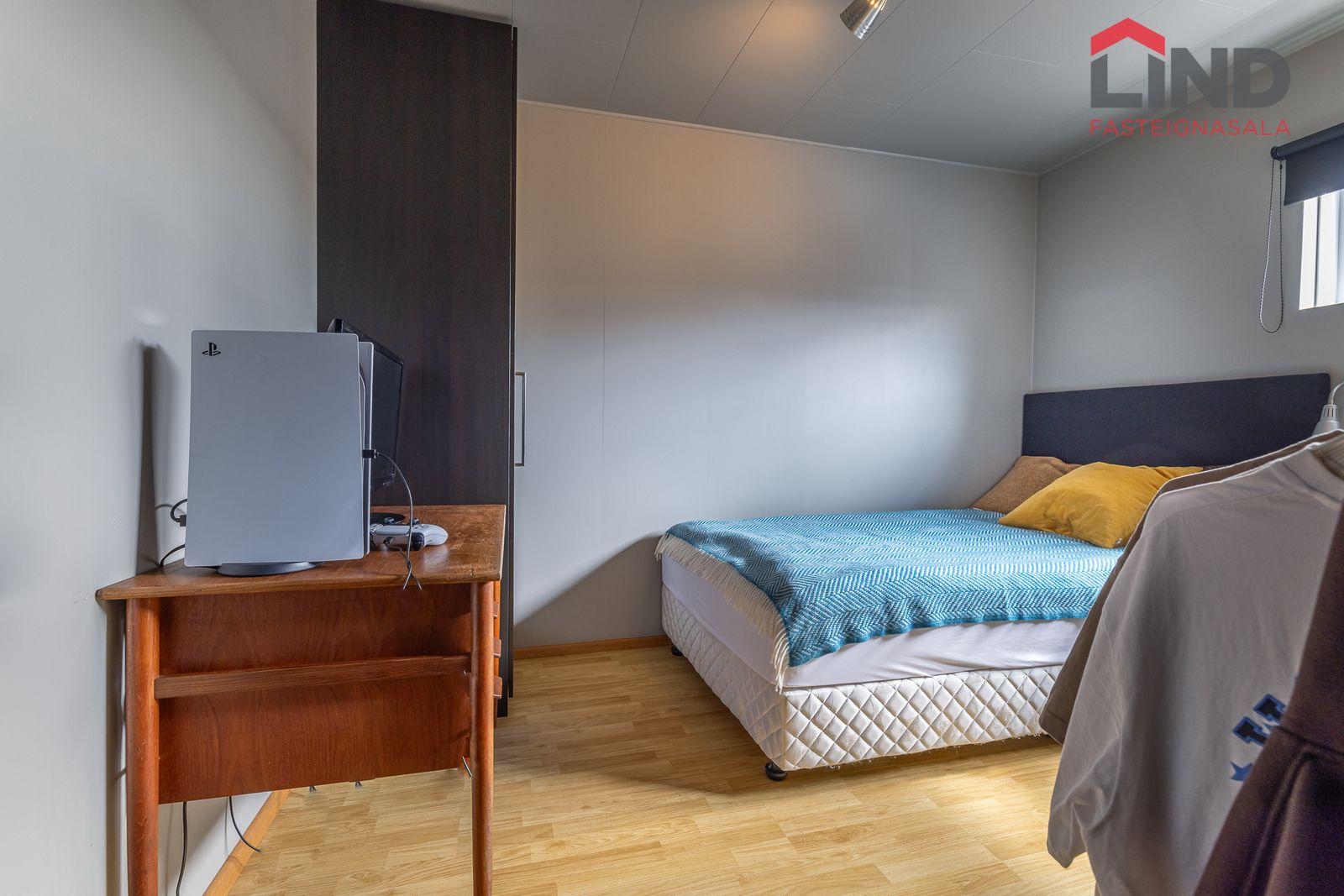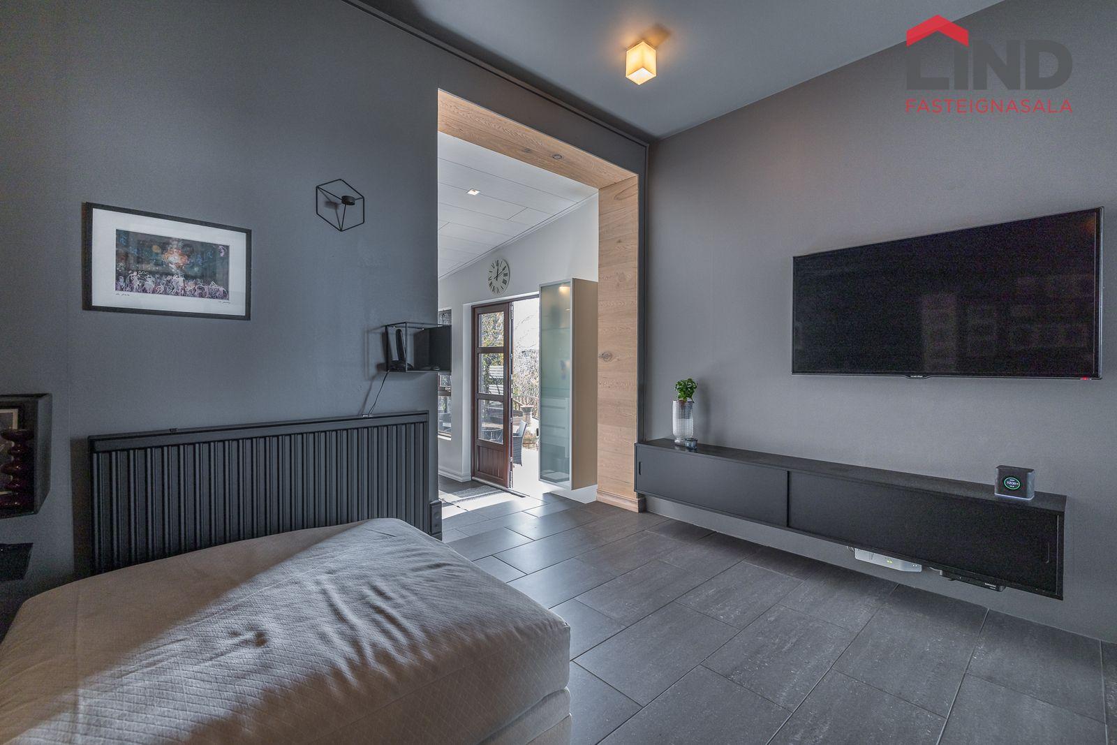 Eignin skiptist í anddyri, 3 - 4 svefnherbergi (hjónaherbergið er sameinað úr tveimur svefnherbergjum), mjög rúmgott og fallegt eldhús, sjónvarpshol, baðherbergi með baðkari og sturtu, gestasalerni, þvottahús með snúrum, virkilega miklu vinnuplássi og mikilli og góðri innréttingu ásamt bílskúr með gryfju.
