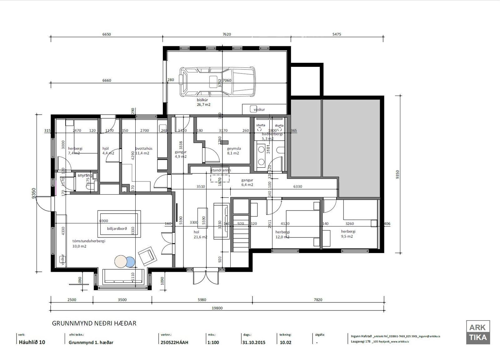 - Tómstundaherbergi með gestaherbergi innaf; eldhúskrók / bar og gestasalerni; hægt að ganga beint út/inn í tómstundaherbergið frá austurgafli