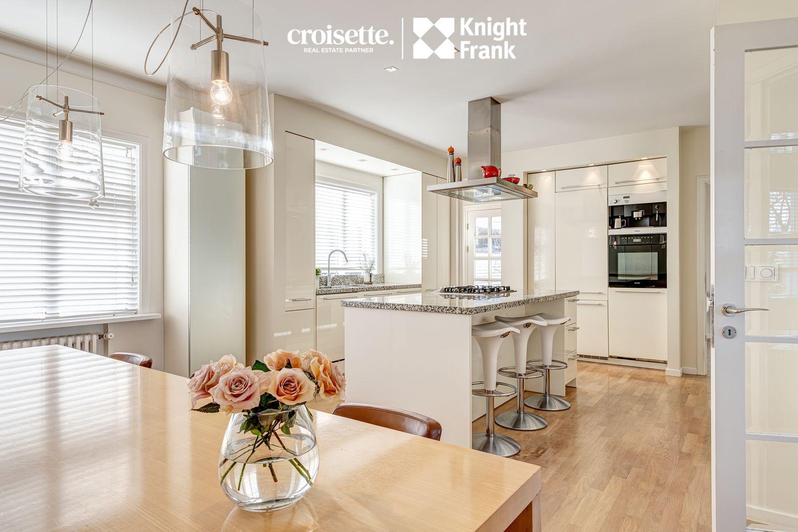 - Eldhús með stórri eyju og gaseldavél sambyggt borðstofu; gengið úr eldhúsi út á pall; útsýni upp í litlu Öskjuhlíð (Veðurstofuhæð)
