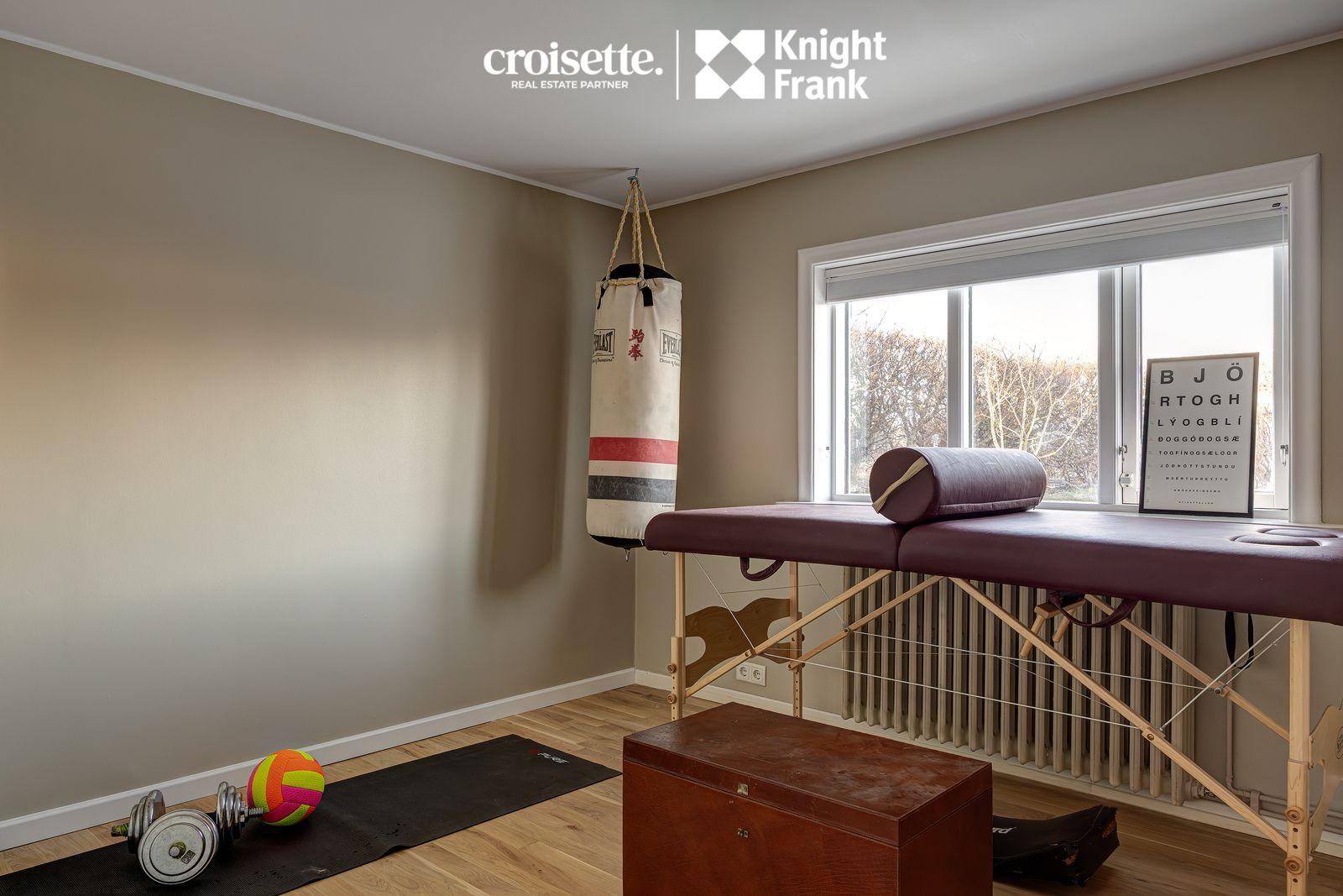 Nánari upplýsingar veitir Styrmir Bjartur Karlsson, s. 899 9090 og styrmir@croisette.isTveggja hæða 368 m2 hús í lokaðri götu sem aðeins telur sex hús, fjærst umferð. Húsið lætur lítið yfir sér frá götunni en gengið er inn á stóran terrasso steyptan pall sem tekur hlýlega á móti fólki mót suðri.