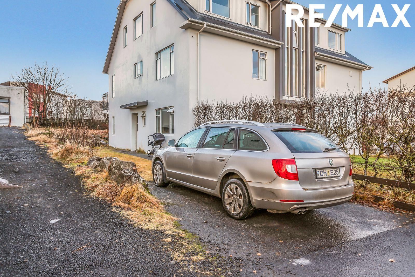 Nánari lýsingar eignar:Einkabílastæði er við vinstri gafl hússins þar sem gengið er inn í íbúðina inn um sérinngang.