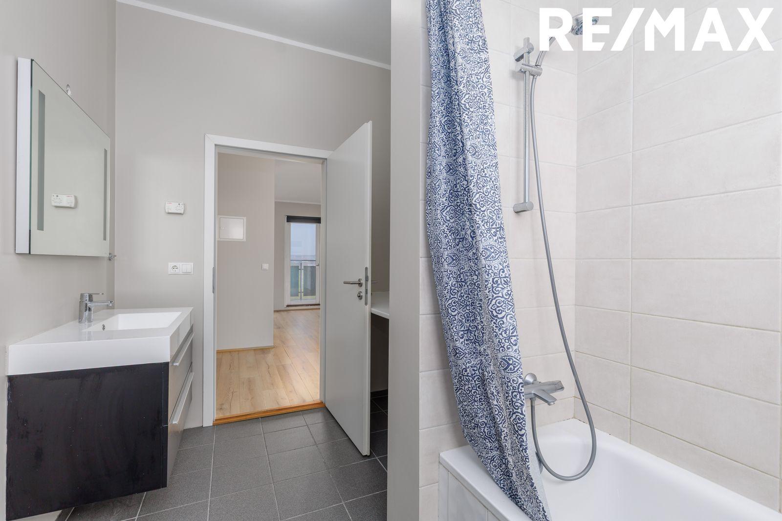 Baðherbergi: Flísalagt gólf sem og við votrými. Baðkar með sturtutæki. Innrétting með handlaug. Aðstaða fyrir þvottavél og þurrkara er í rýminu. Upphengt salerni. Gluggi er í rýminu.