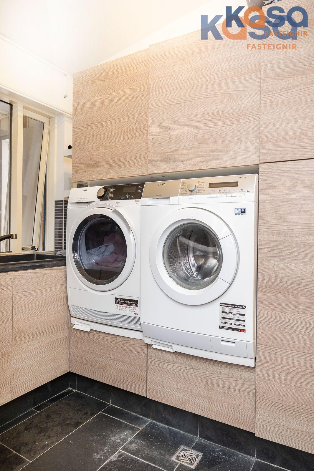 Þvottahús: Góð innrétting með plássi fyrir þvottavél og þurrkara í vinnuhæð. Stór vaskur er í þvottahúsi.