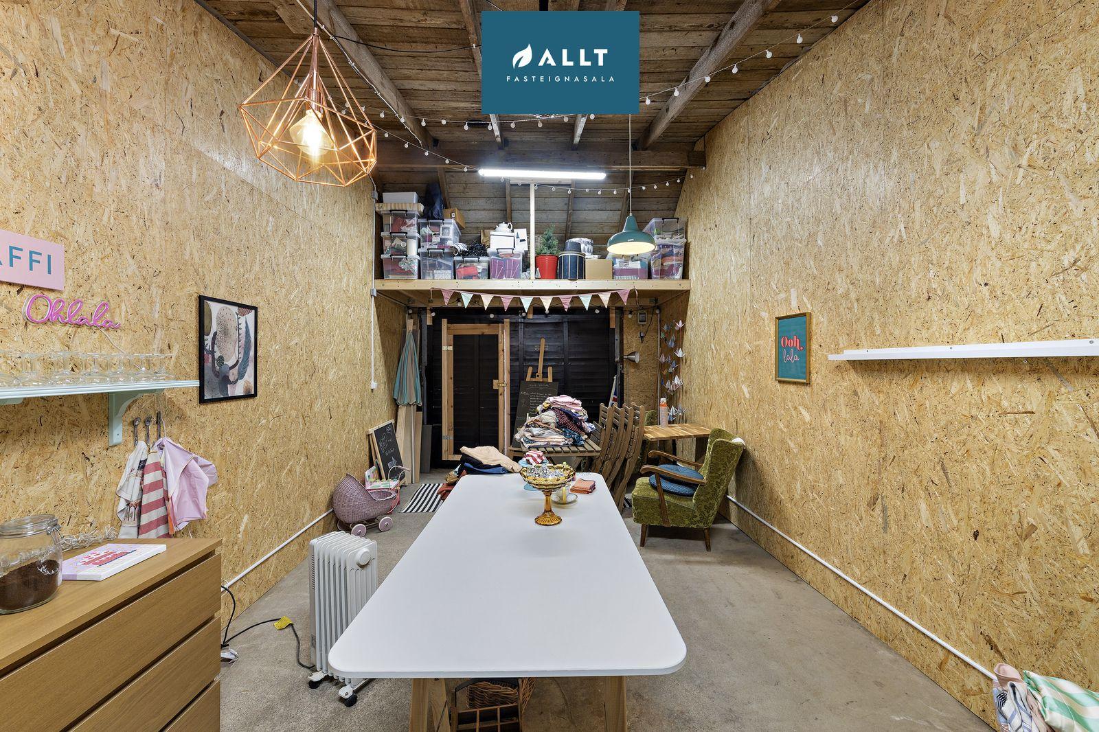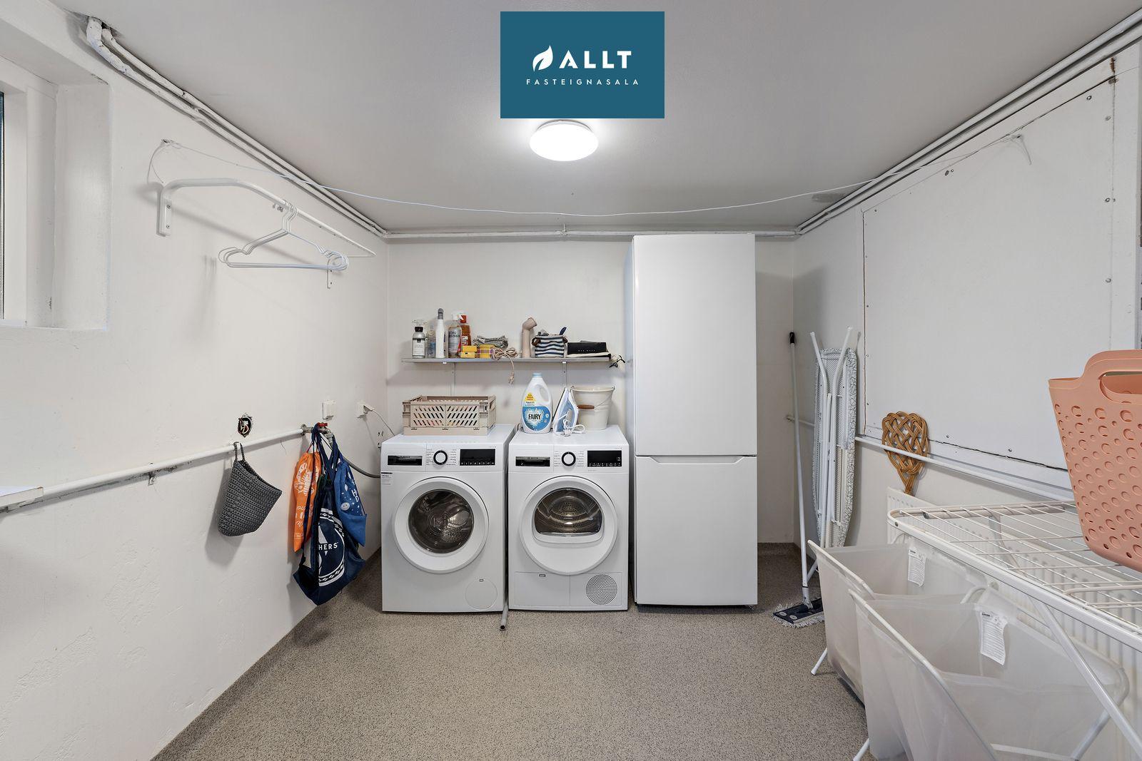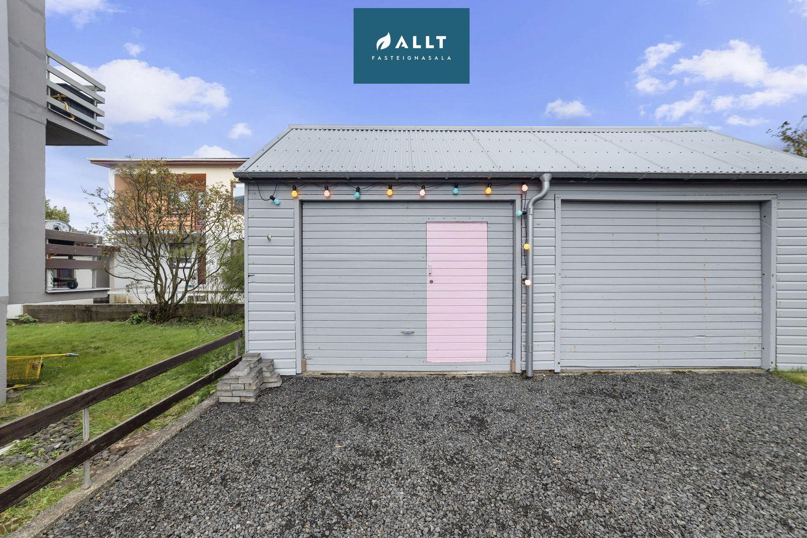 þvottaherbergi og geymsla.Bílskúr er með rafmagni og nýlegu járni á þaki, nýlega klæddur að innan og rafmagn endurnýjað.