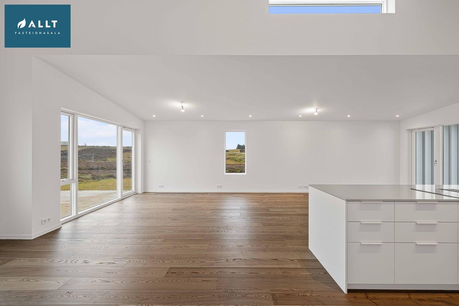 ** Gólfsíðir gluggar í alrými.