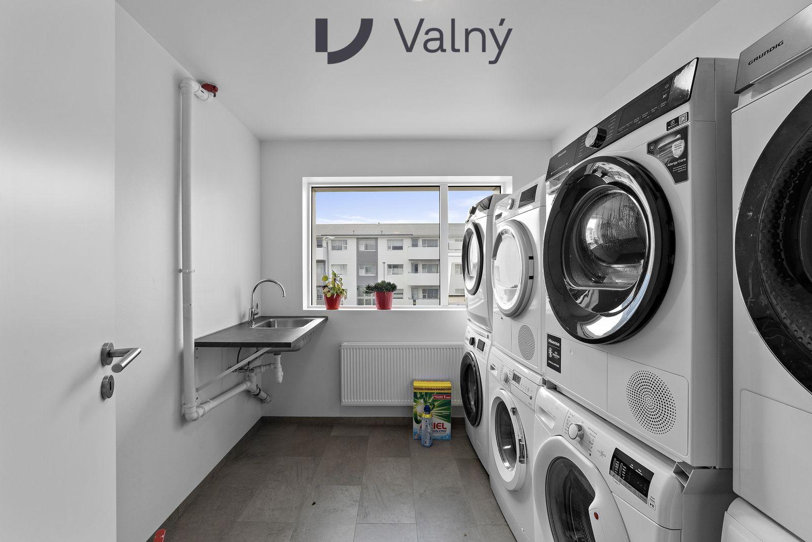 Þvottaaðstaða er á hæðinni og er sameiginlegt fyrir fjórar íbúðir.