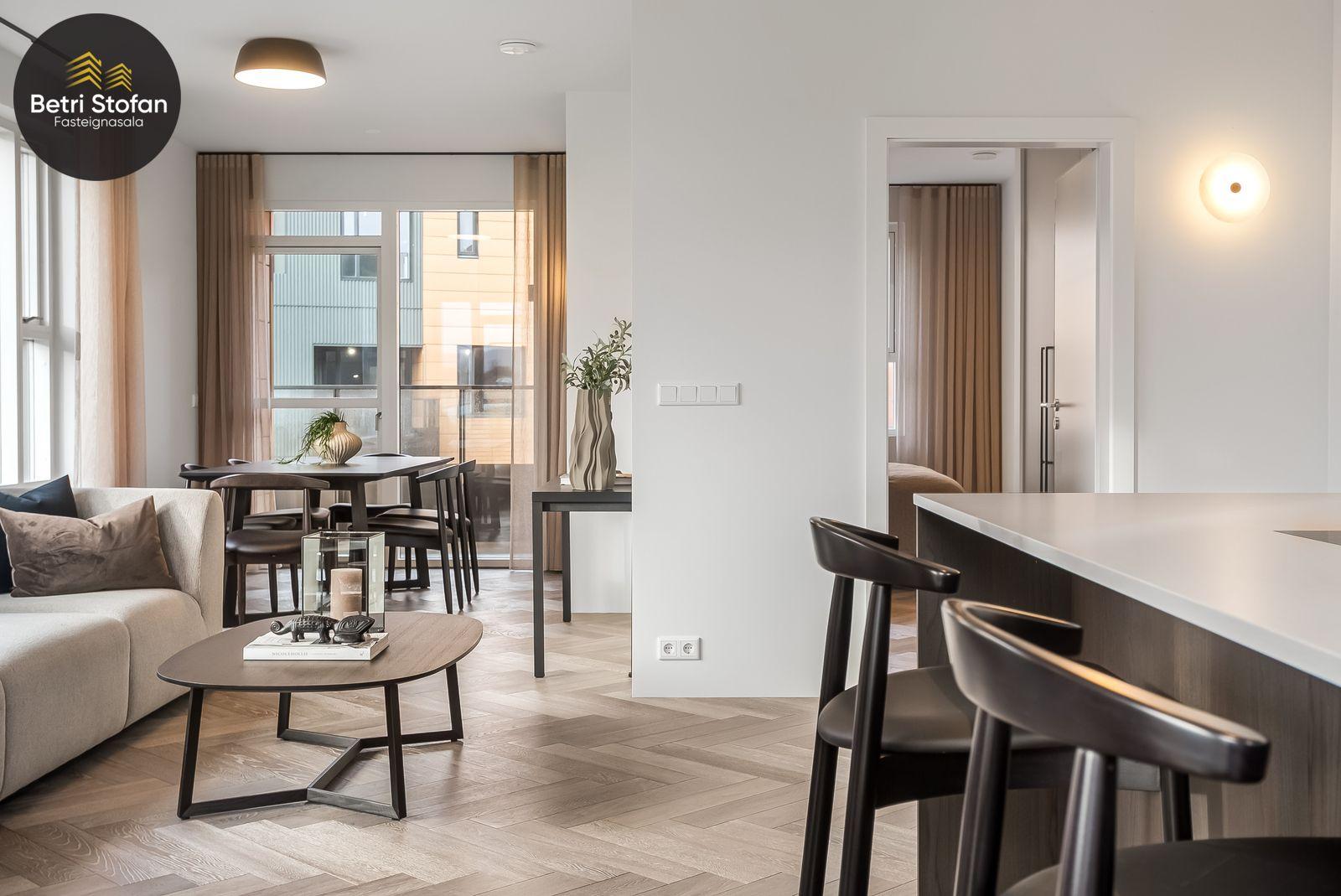 Eldhús er vel útbúið, sérsmíðaðar Voke III innréttingar, á borðplötum er kvartssteinn. Vönduð tæki eru í eldhúsi, innbyggður ísskápur og uppþvottavél. ofn í vinnuhæð, eldhús- og blöndunartæki að vandaðri gerð.