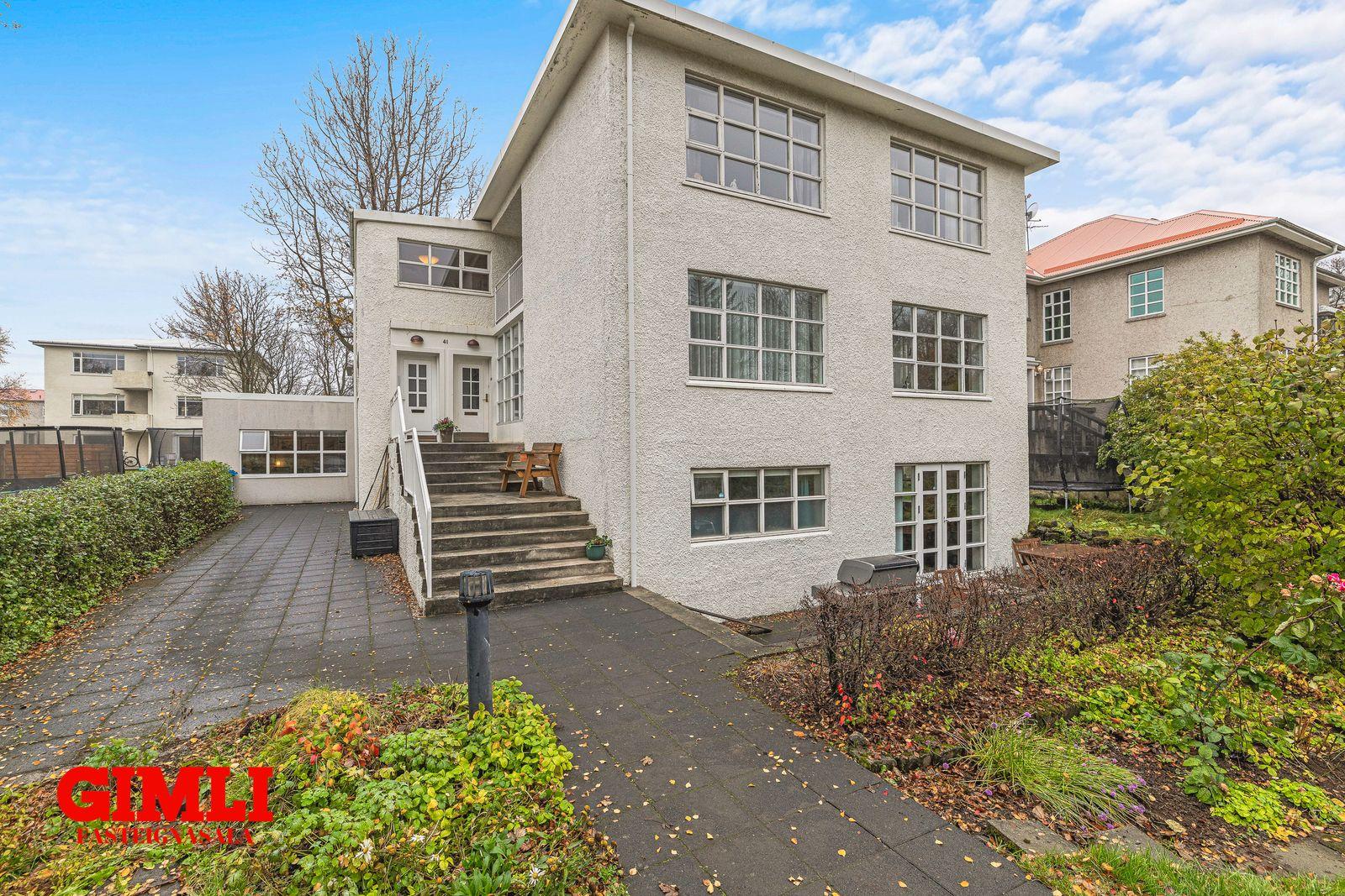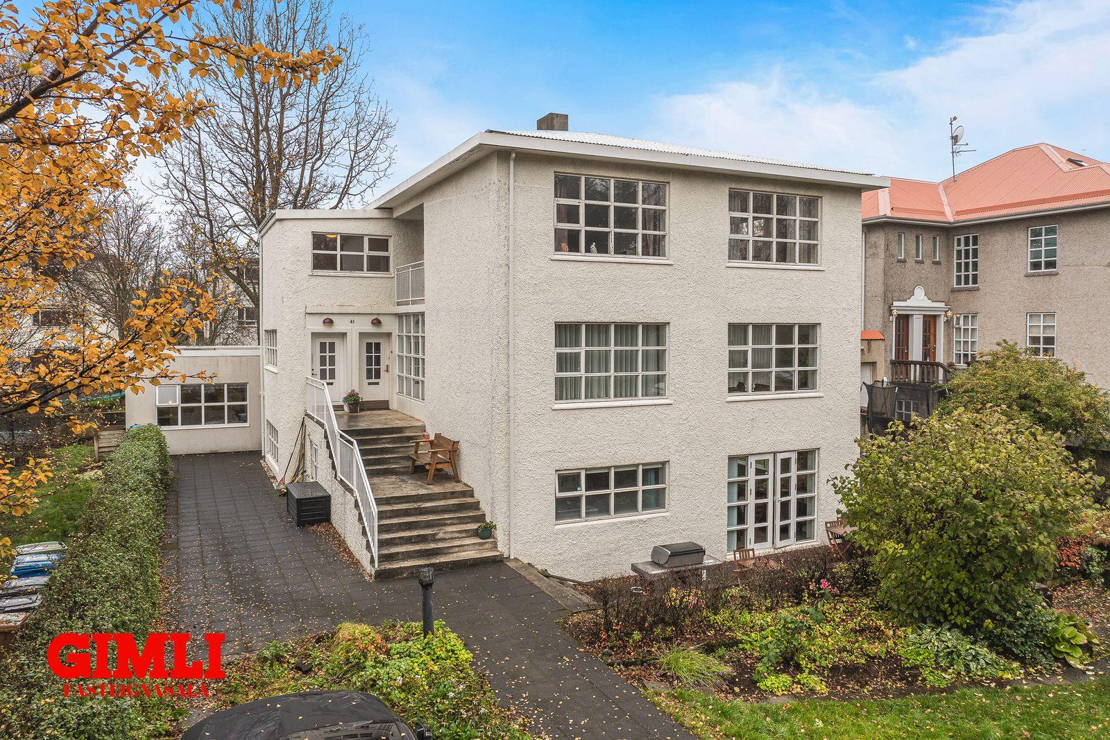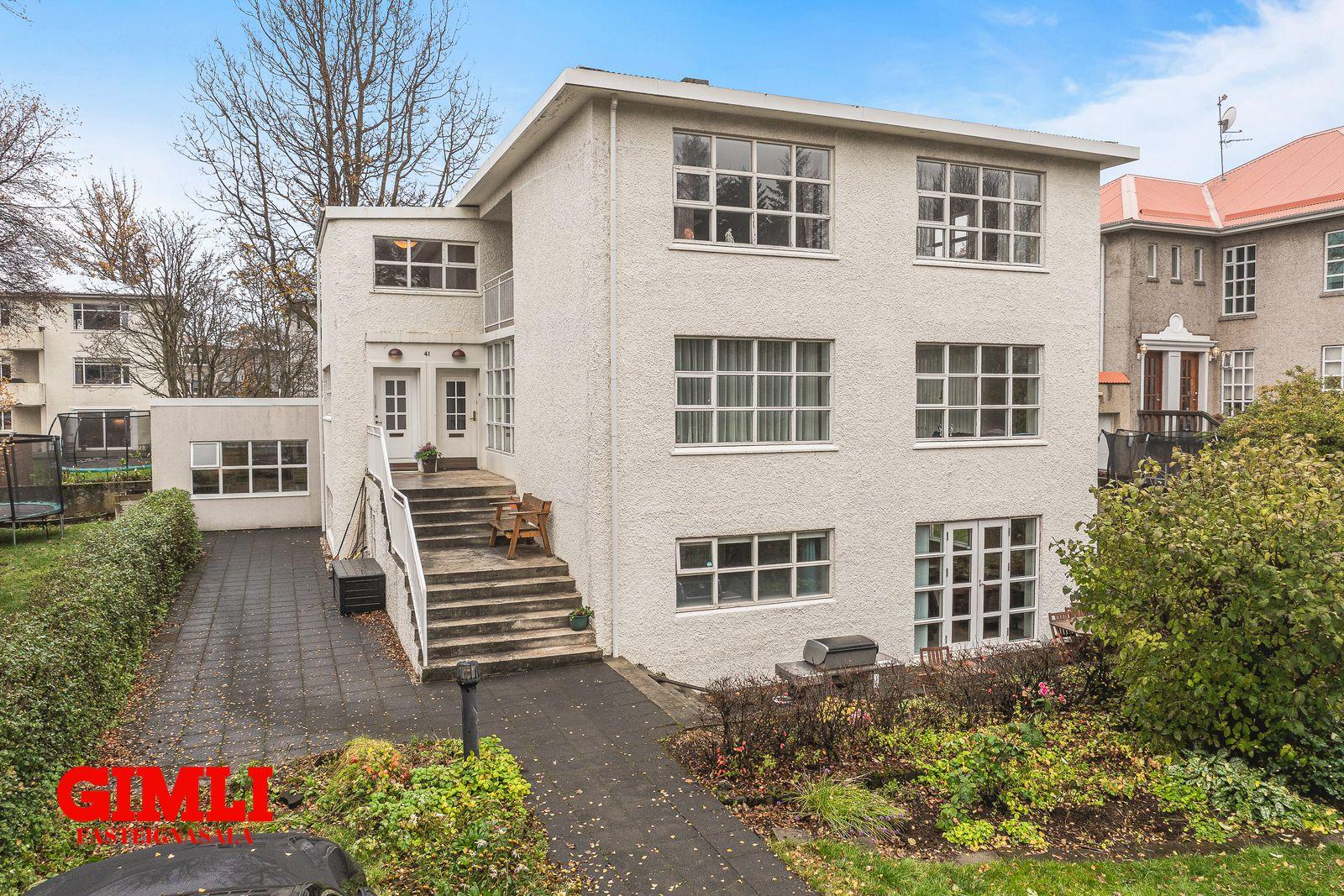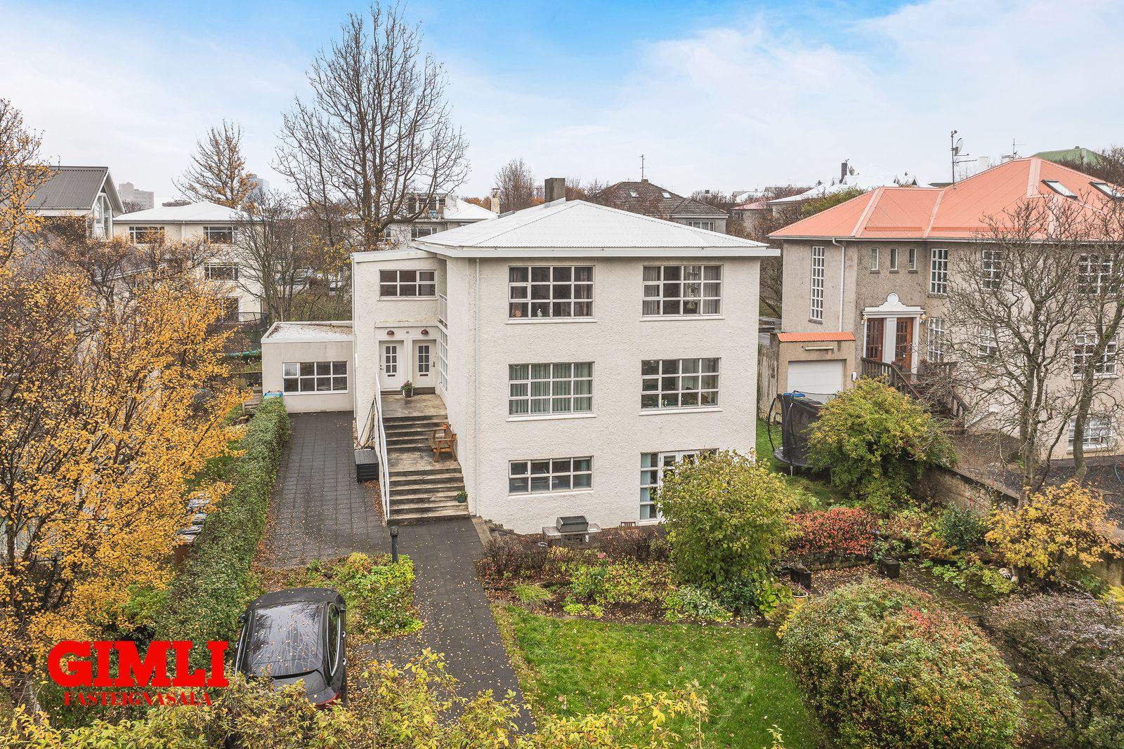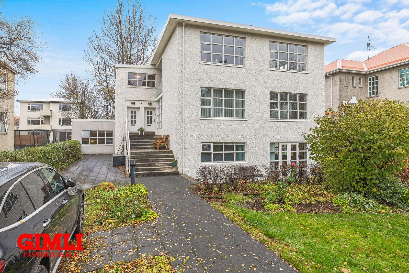 Gimli fasteignasala og Lilja Hrafnberg kynna: Falleg og björt efri sérhæð ásamt aukaíbúð í sérlega glæsilegu húsi með franskri gluggasetningu á þessum eftirsótta stað á móts við Kjarvalsstaði. Stutt er í skóla, þjónustu og í miðborgina. Eignin er í heildina skráð 161,9 fm og skiptist í forstofu með stiga upp á 2.hæð, arinstofu, tvær samliggjandi stofur, eldhús, tvö svefnherbergi, tvennar svalir, baðherbergi, geymslu, risloft og 36,6 fm aukaíbúð í vinnustofu/bílskúr. Eigninni fylgja sérstæði.