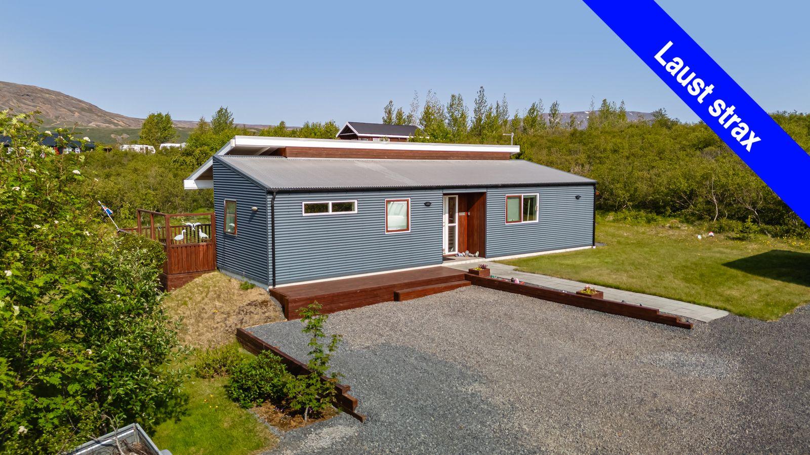 Um er að ræða einstaklega skemmtilega og vandaða eign í fallegu umhverfi. Húsið stendur á steyptum grunni með sökkli og steyptri gólfplötu. Hitaveitu, gólfhiti og lokað kerfi með varmaskipti. Að utan er húsið klætt með láréttu bárujárni og standandi timburklæðningu. Umhverfis húsið er ca. 100 fm timburverönd með skjólveggjum og heitum potti. Innbú fylgir með nema persónulegir munir.