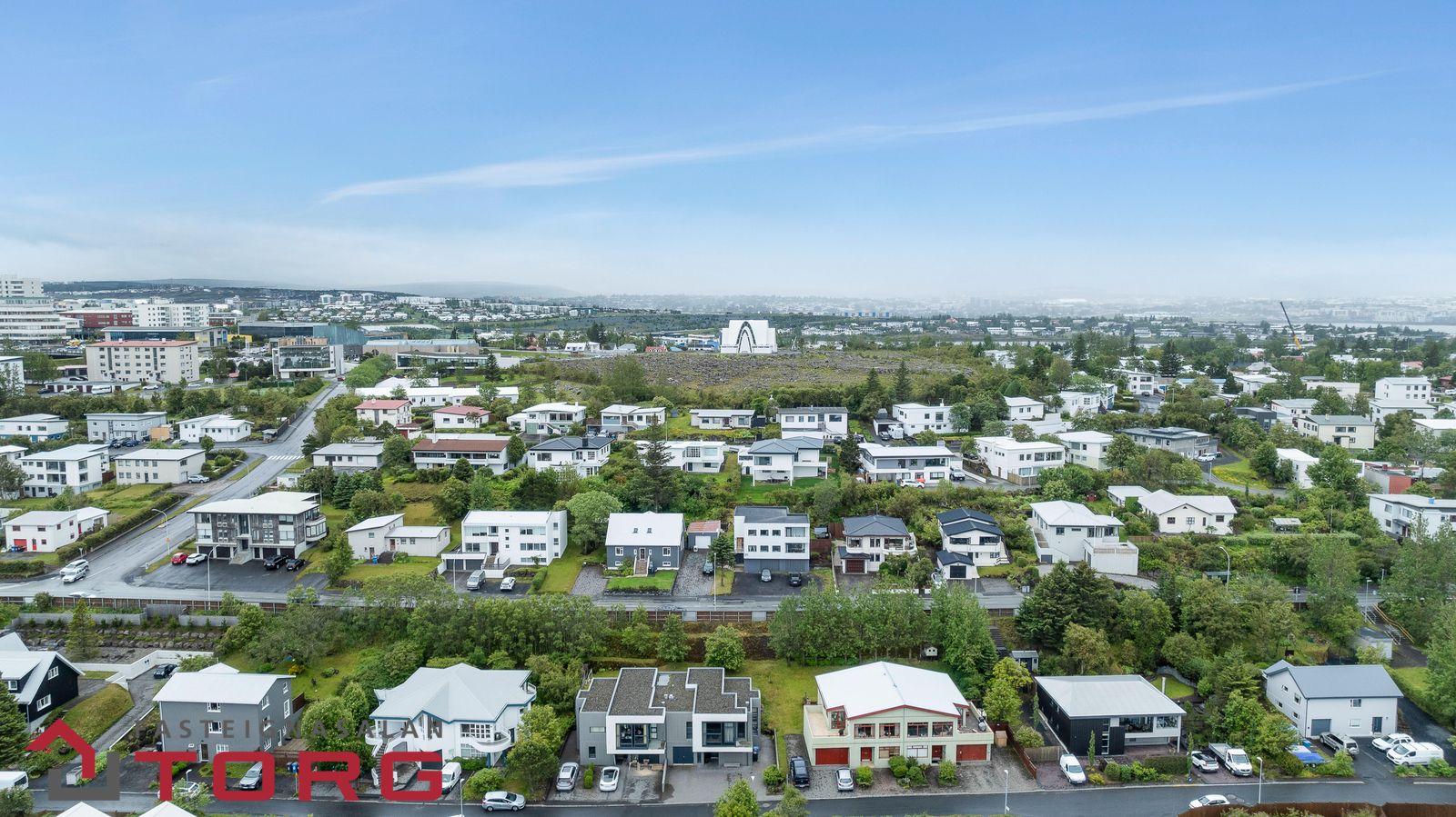 Garður og aðkoma: aðkoman er falleg, hellulagt bílaplan með hitaílögnum, steyptir veggir með lýsingu, verönd úr harðvið og heitur pottur. Í garðinum er svokallað úthagatorf í stað hefðbundins grass, krefst mjög lítillar umhirðu.