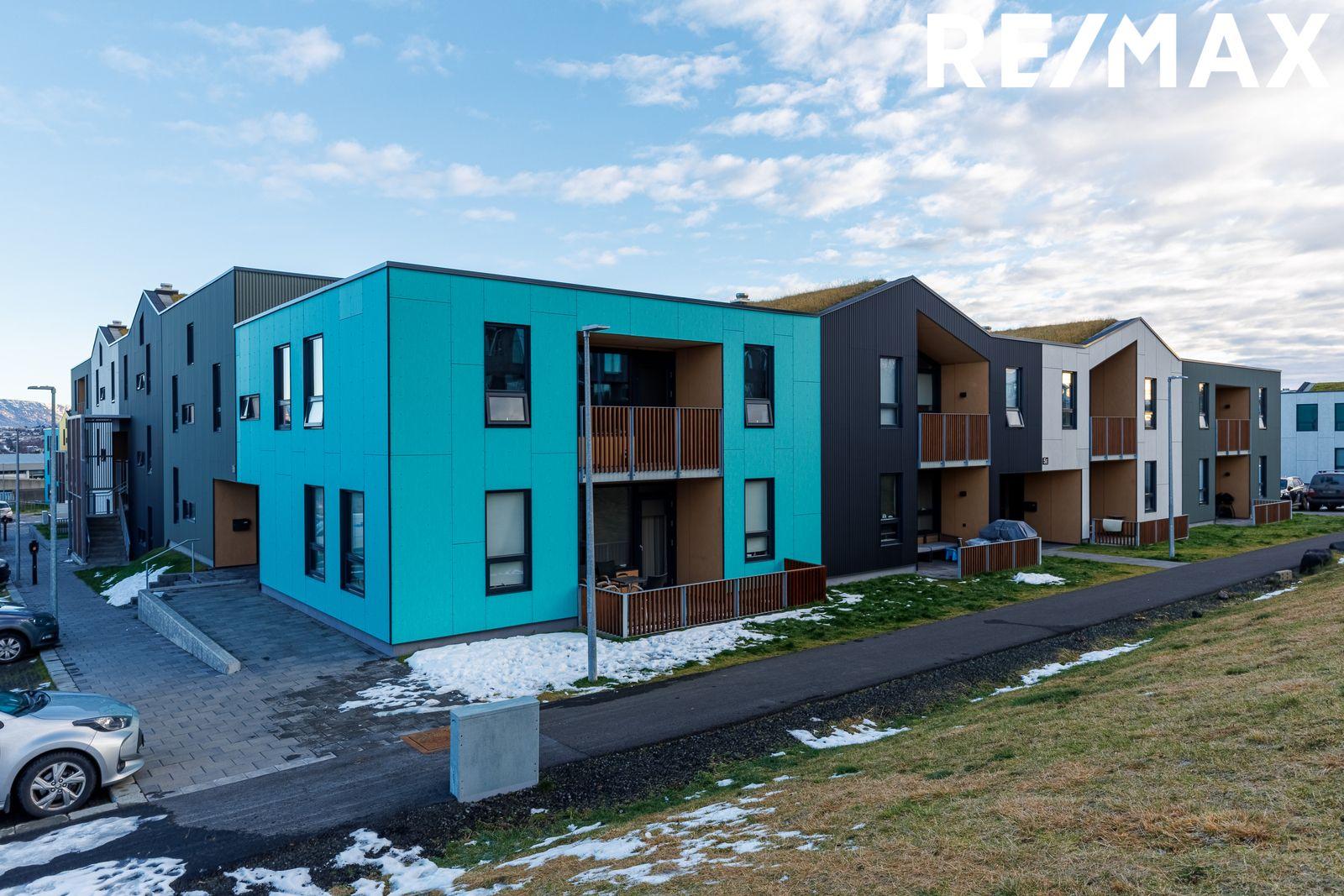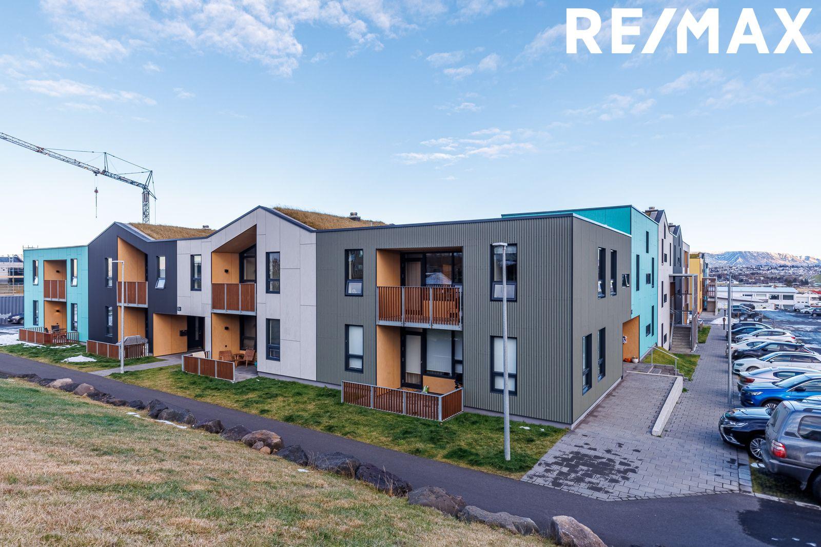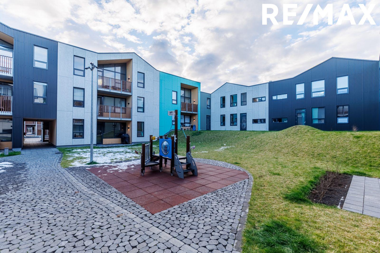 Dagbjartur Willardsson löggiltur fasteignasali og RE/MAX kynna, Eskiás 5F, íbúð 0208 fnr. 252-8335- SÉRINNGANGURÍbúðin er skráð hjá þjóðskrá 113,9 fm og er geymsla innan íbúðar skráð í þann fermetrafjölda. Þrjú svefnherbergi eru í íbúðinni. íbúðin er á efri hæð í tveggja hæða húsi Skráð byggingarár er 2024 en núverandi eigendur tóku við íbúðinni nýrri í ágúst 2024. Íbúðin er einstaklega björt og falleg horníbúð. Sjá má fyrirkomulag íbúðar á gólfteikningu sem er vistuð þar sem ljósmyndir af eigninni eru. FÁÐU SENT SÖLUYIRLIT YFIR EIGNINA HÉR.Nánari lýsing:Aðkoma: Bílastæði við húsið. Gengið er upp í íbúðina í forstofu á jarðhæð og þaðan er teppalagður stigi að íbúðinni á 2. hæð.